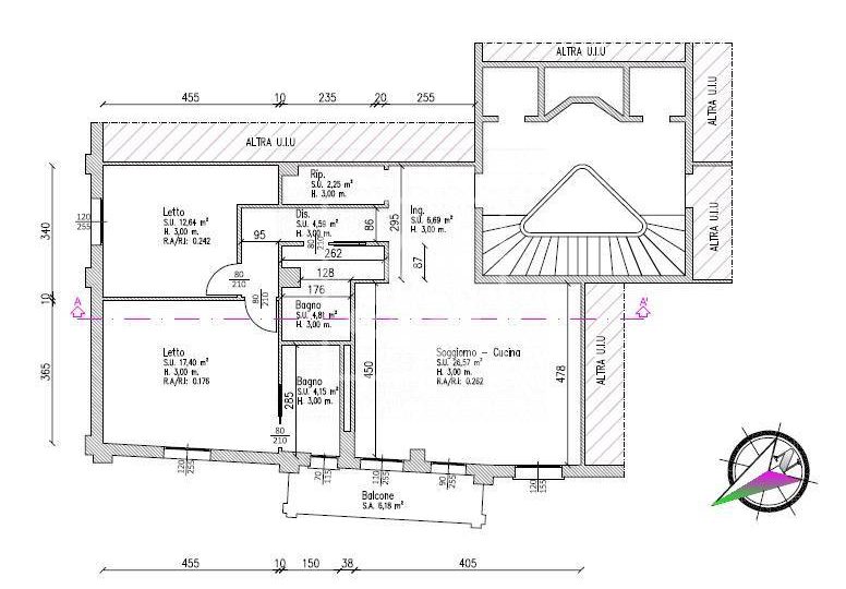 Appartamento di 92 mq situato al terzo piano di un palazzo dotato di doppio ascensore.