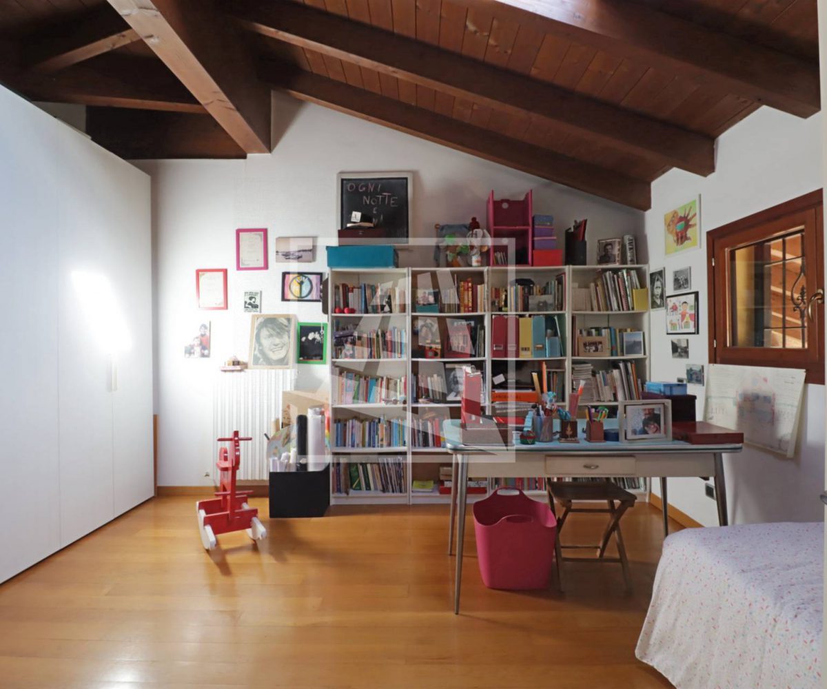 Il piano è completato da un bagno finestrato, un comodo ripostiglio e una graziosa loggia chiusa e riscaldata, attualmente adibita a studio.