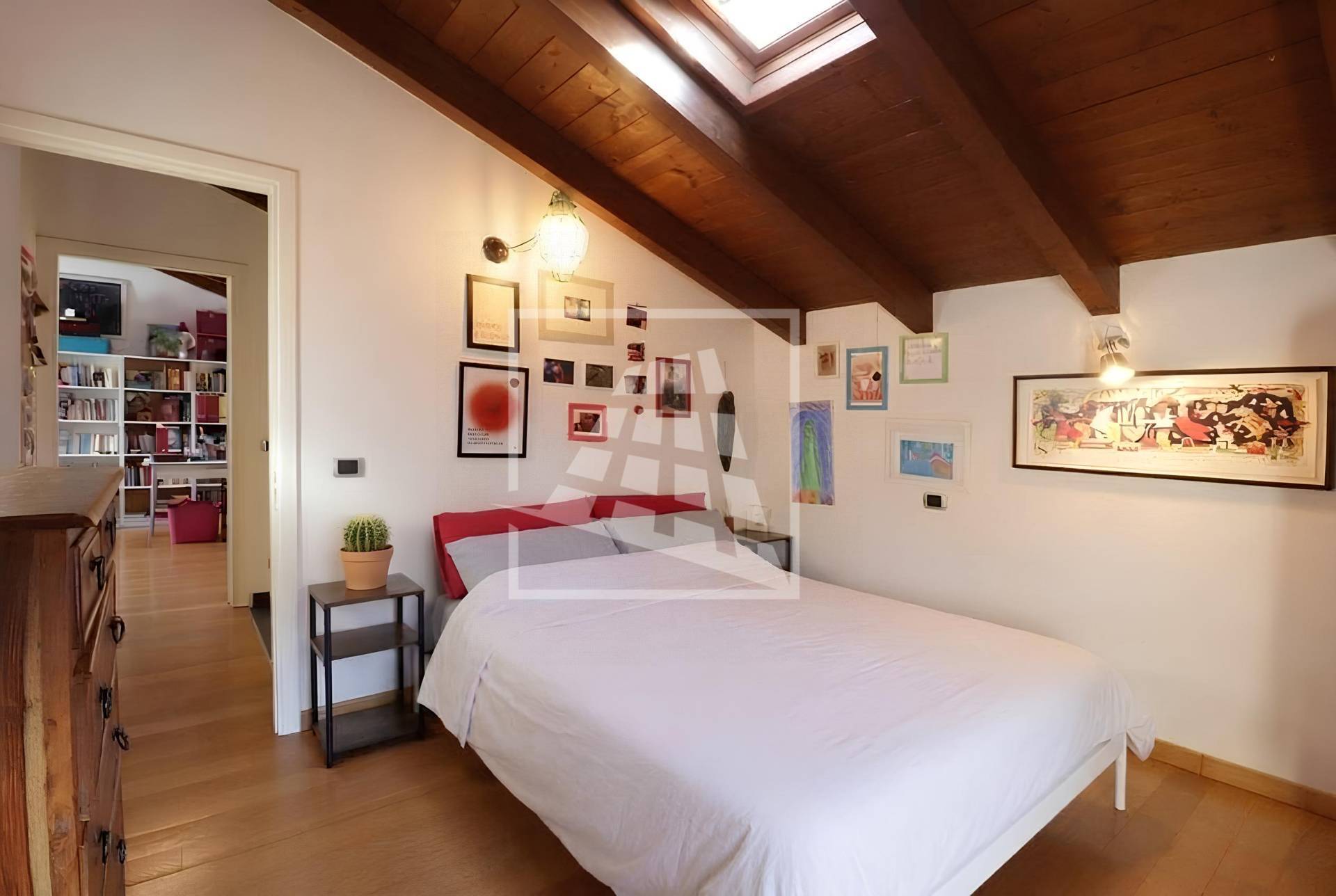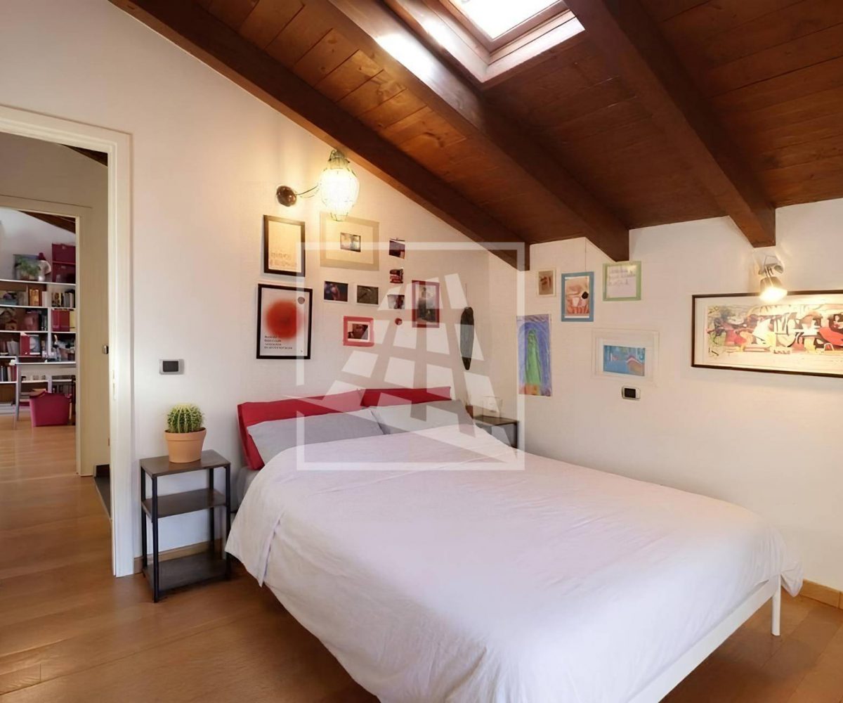 Qui trovano spazio due ampie camere matrimoniali e un ulteriore ambiente ad uso studio, tutti resi estremamente luminosi anche grazie ai lucernari Velux, oltre a un secondo bagno finestrato.