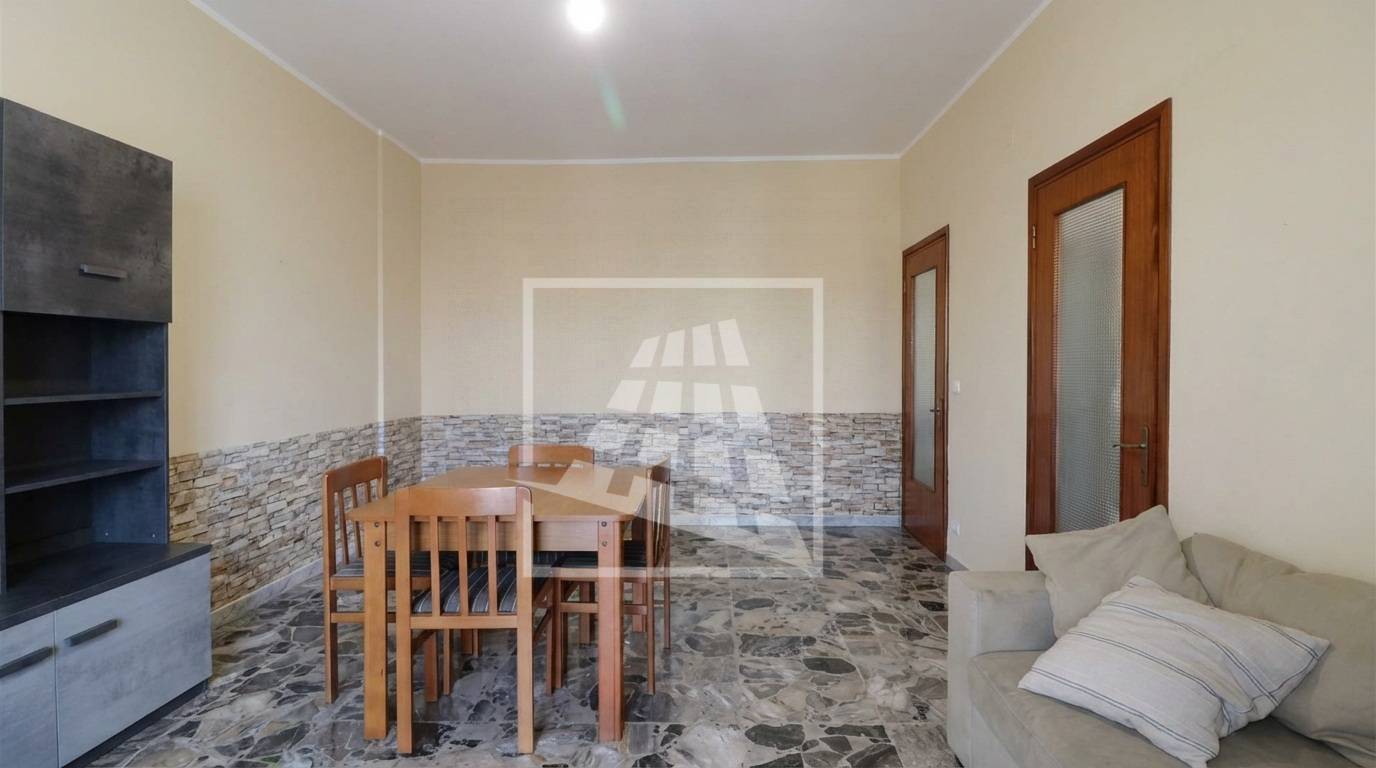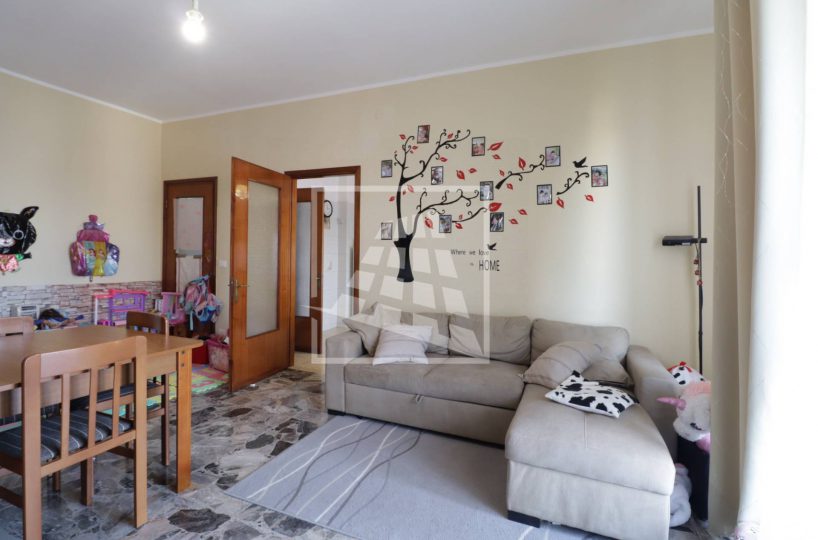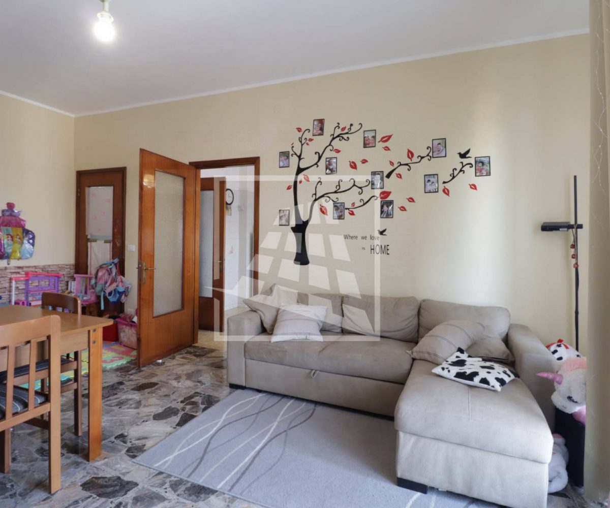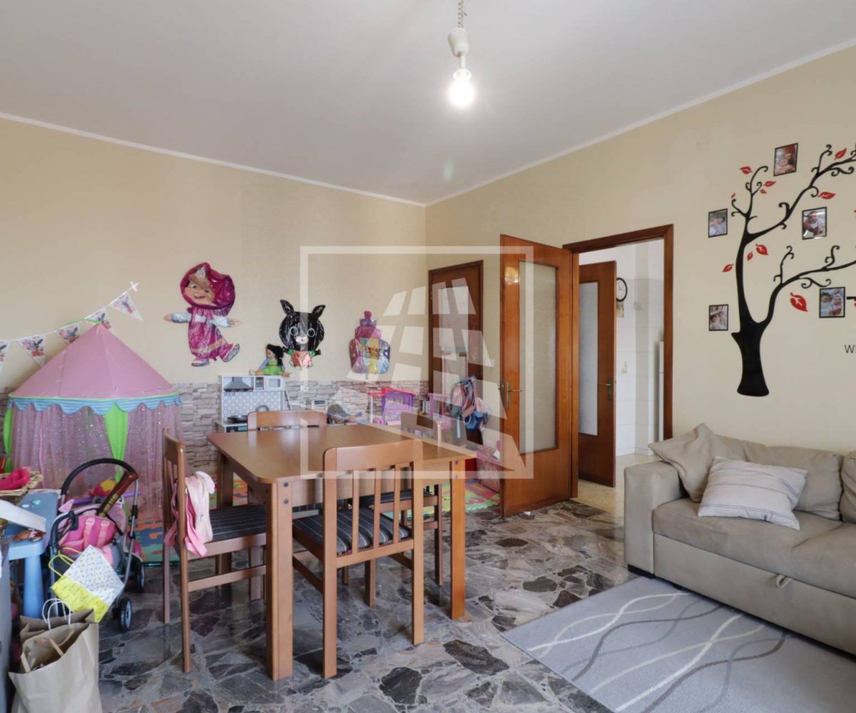 L’ingresso si apre su una zona giorno ben distribuita, composta da un ampio soggiorno con balcone e una cucina abitabile, anch’essa con accesso diretto allo sfogo esterno tramite porta-finestra.