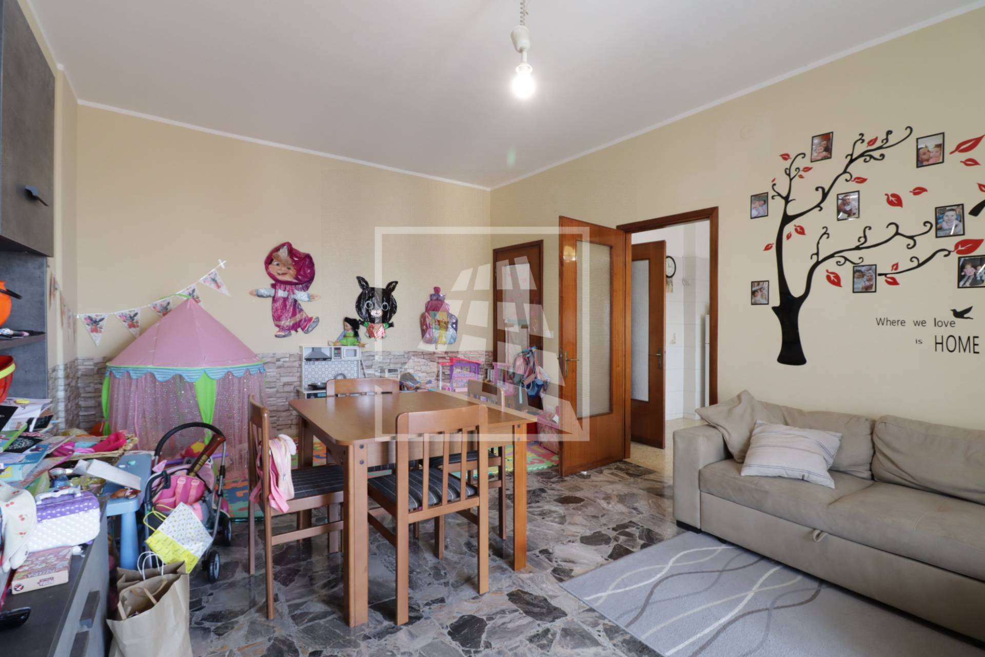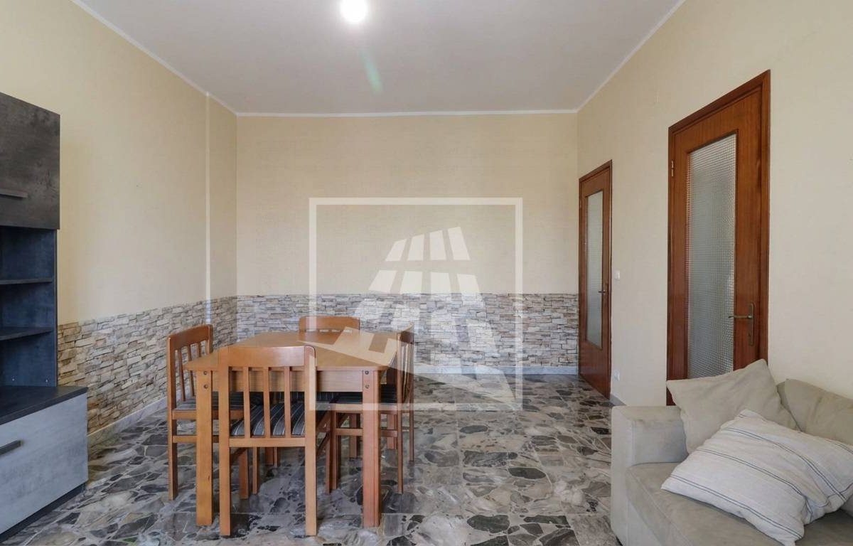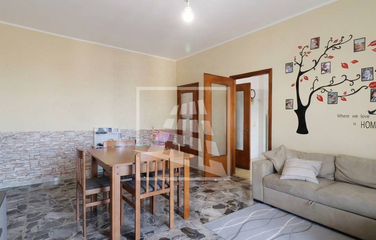 L’ingresso si apre su una zona giorno ben distribuita, composta da un ampio soggiorno con balcone e una cucina abitabile, anch’essa con accesso diretto allo sfogo esterno tramite porta-finestra.