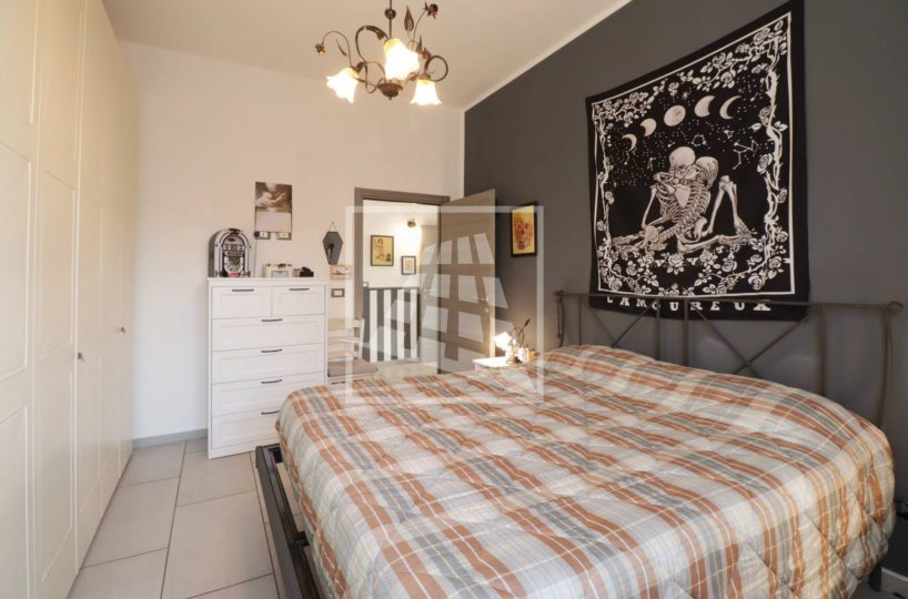 Un funzionale disimpegno separa la zona notte, dove troviamo due camere da letto matrimoniali, un ripostiglio e un bagno finestrato completo di box doccia.