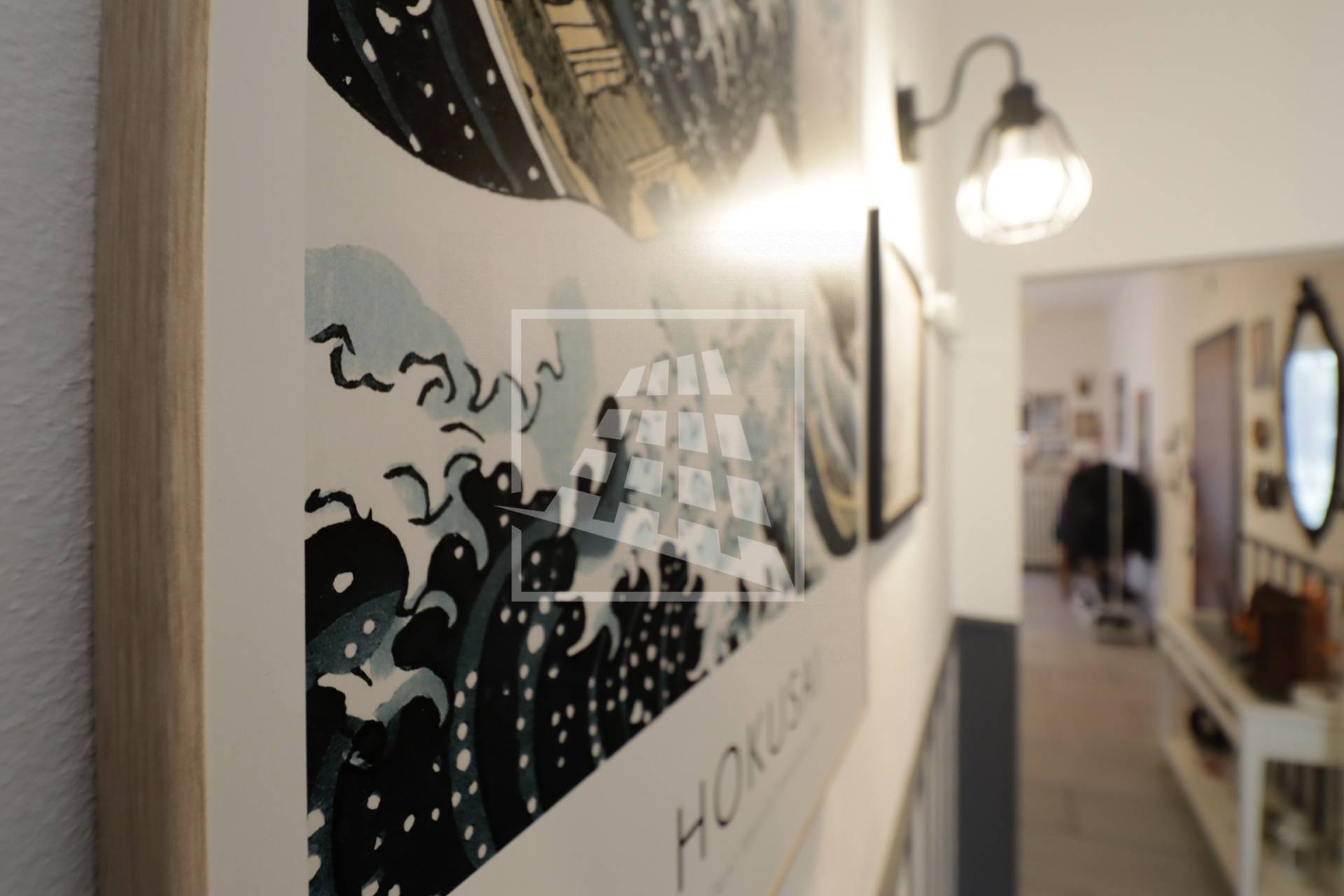 L’abitazione si apre su un ingresso spazioso che conduce alla zona giorno, composta da un luminoso soggiorno con accesso a un balcone vivibile e una cucina caratterizzata da una particolare finitura in muratura, anch’essa servita da un secondo balcone.