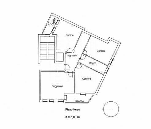 Attualmente è composto da ingresso, soggiorno, cucina, corridoio, due camere matrimoniali, un bagno finestrato e due balconi.