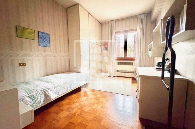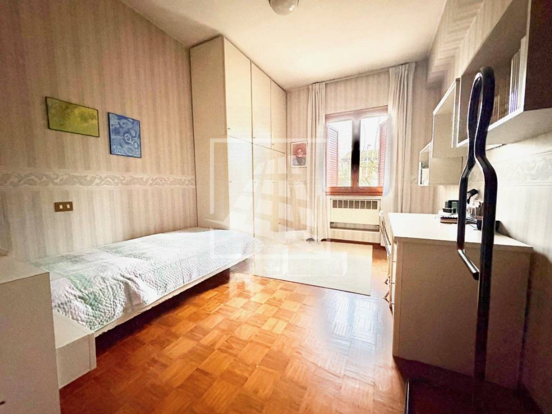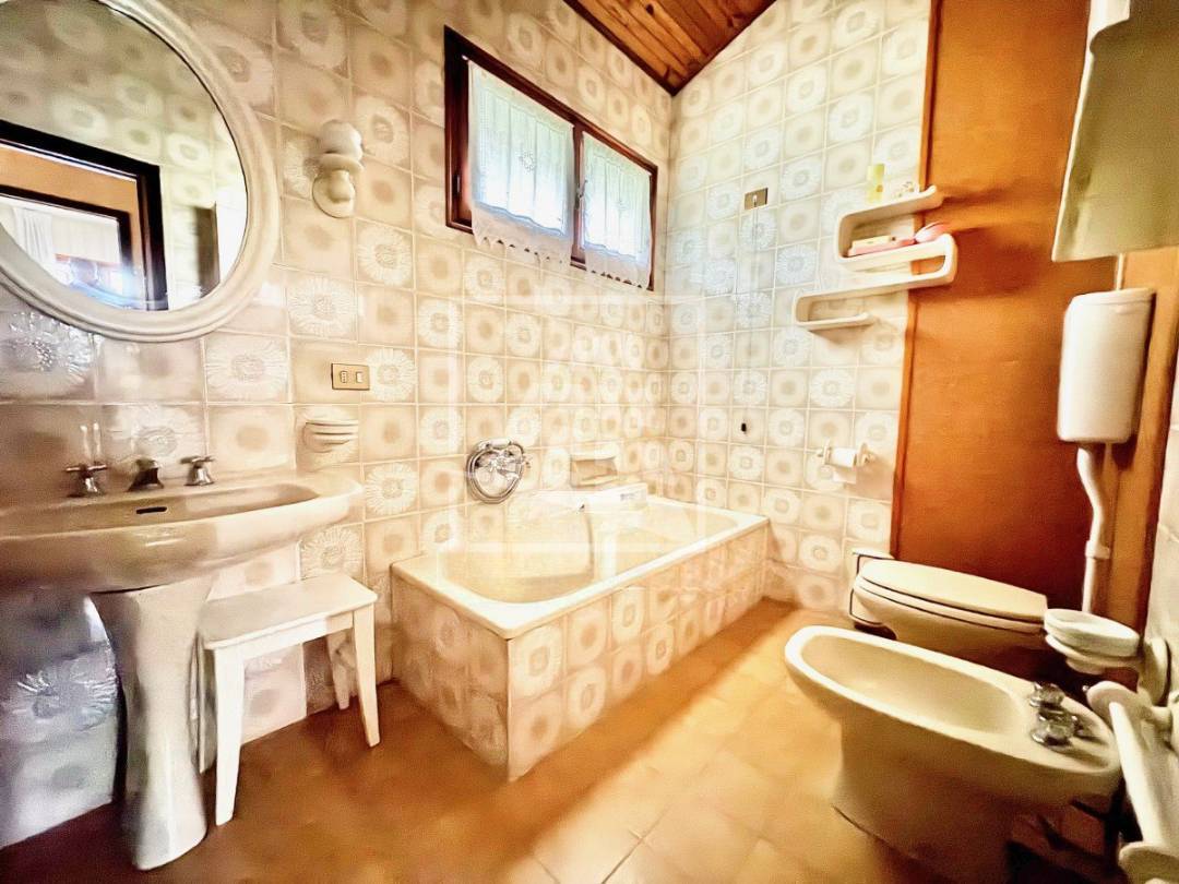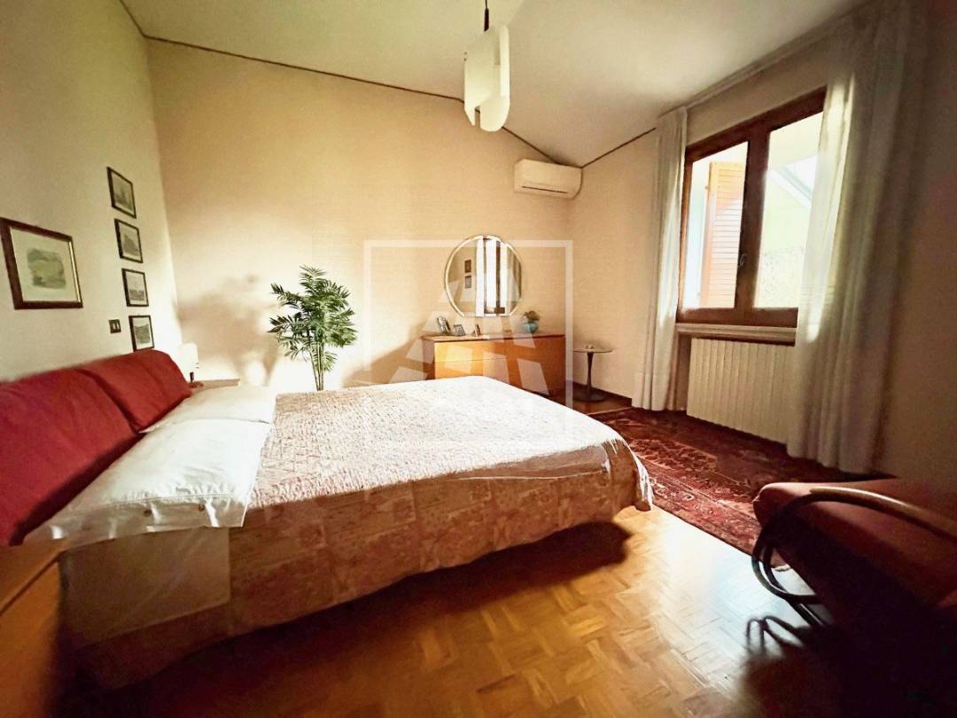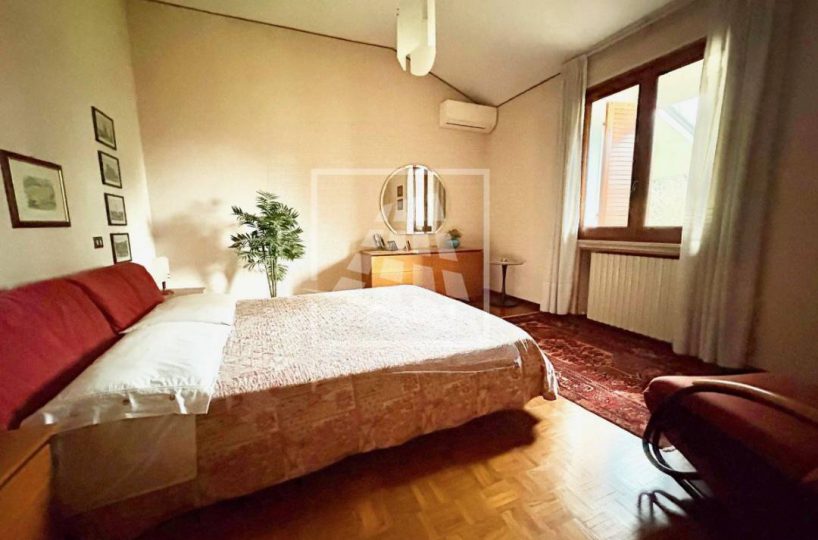 Al primo piano la zona notte si apre con tre ampie camere matrimoniali, rifinite con un elegante pavimento in parquet, servite da un secondo bagno e un ulteriore ripostiglio.
