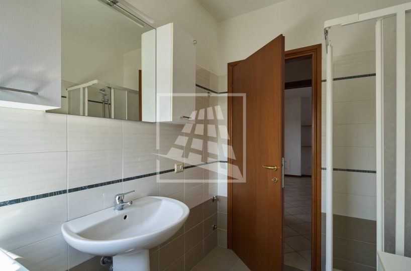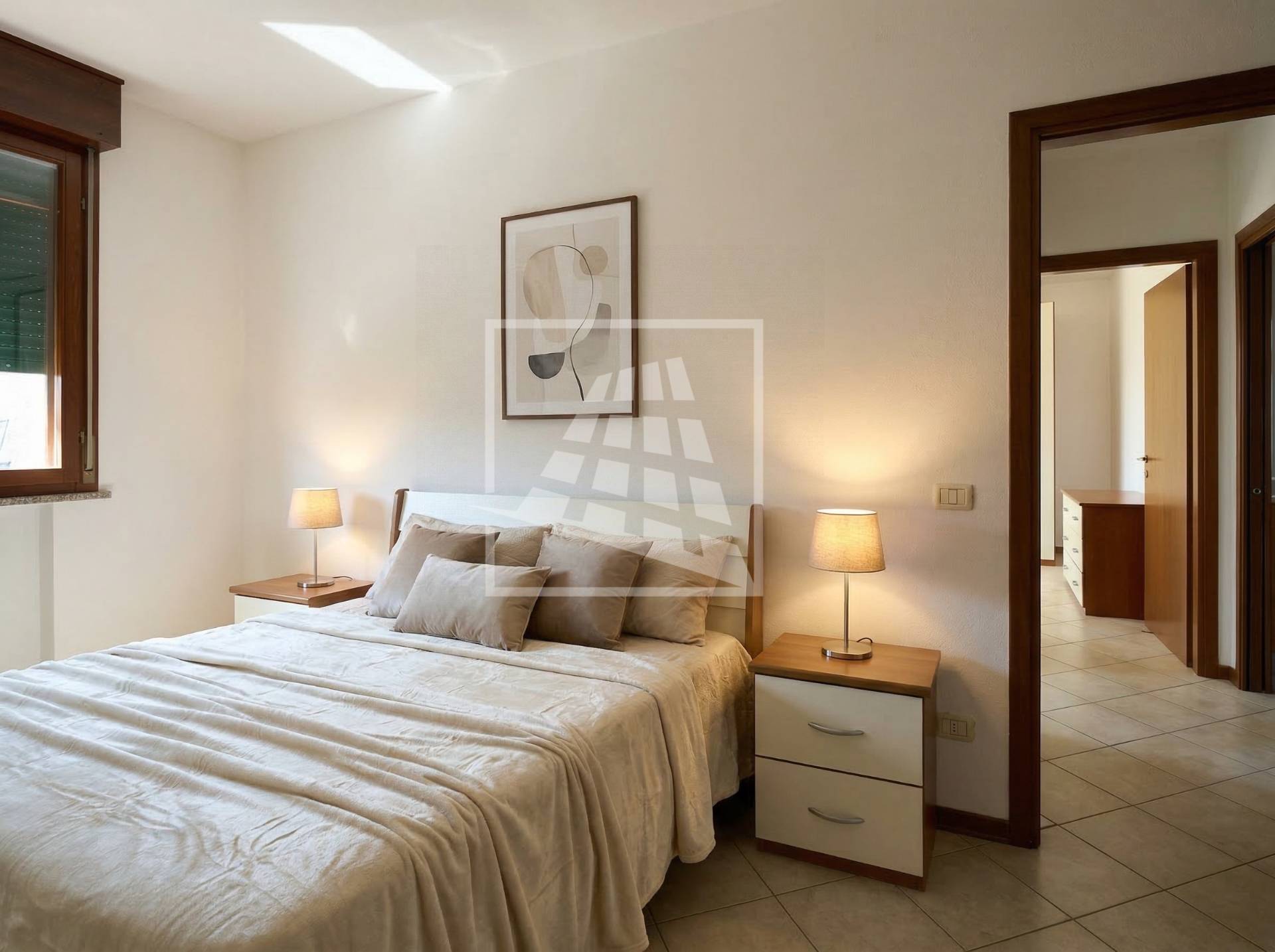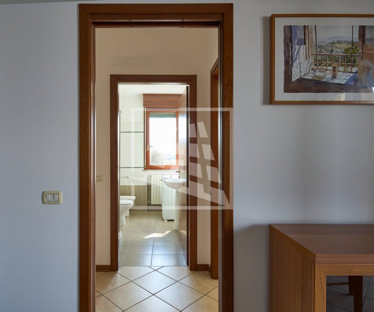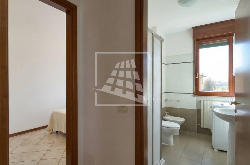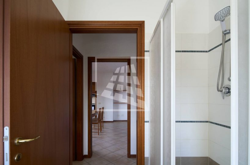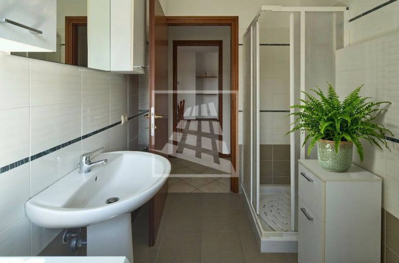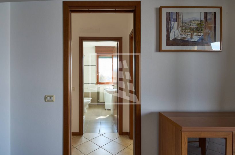 Il disimpegno separa la zona living dalla zona notte, la quale ospita due ampie camere matrimoniali e un bagno finestrato completo di box doccia.