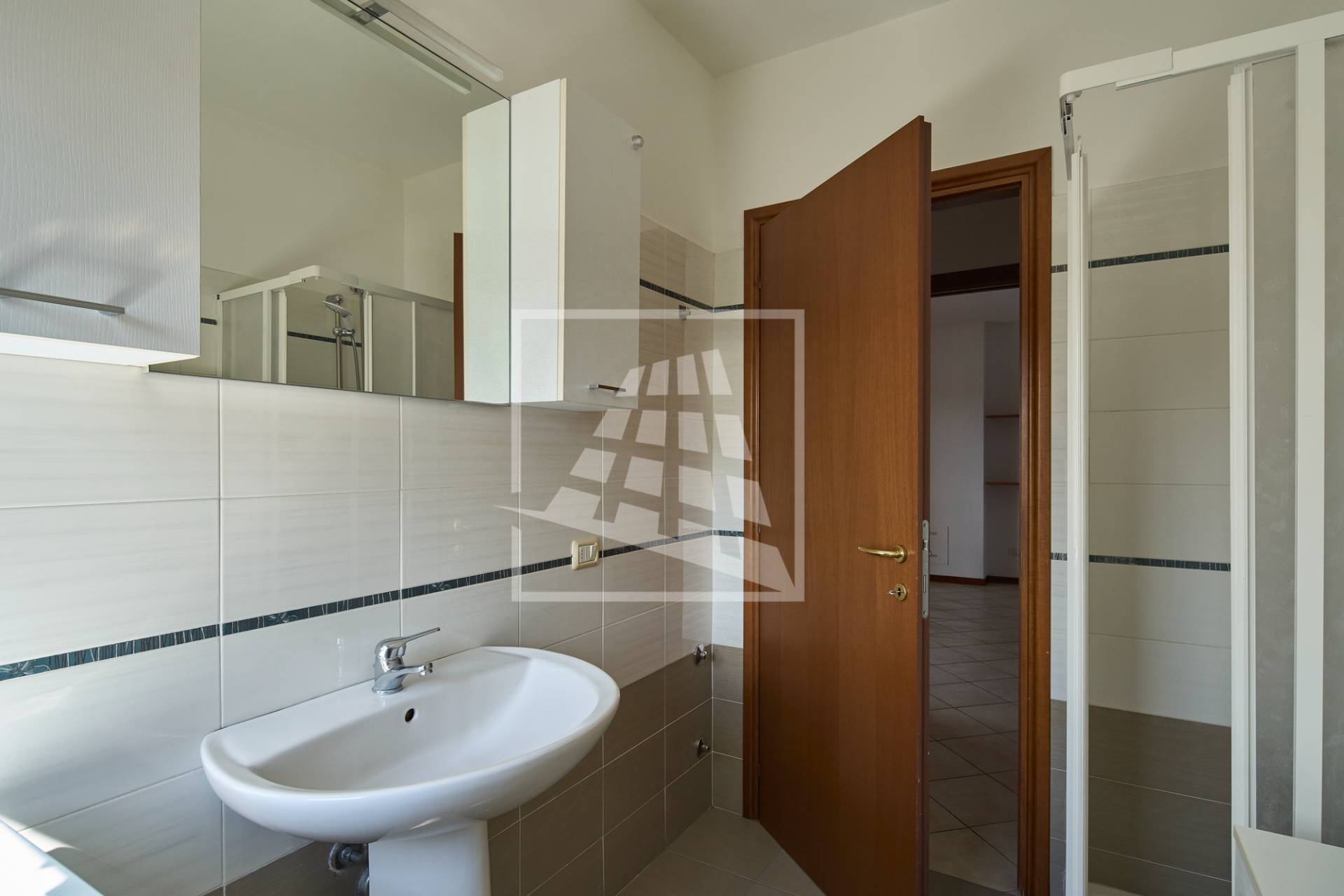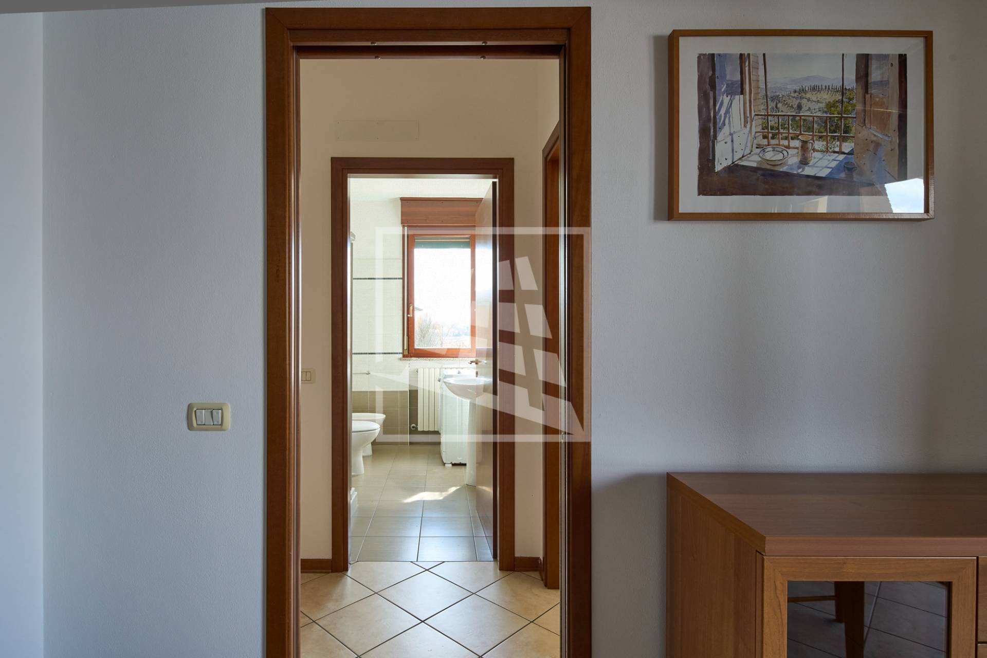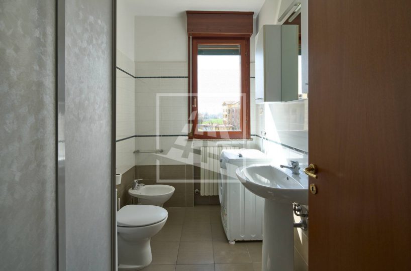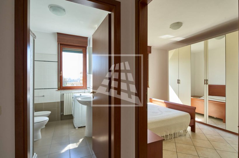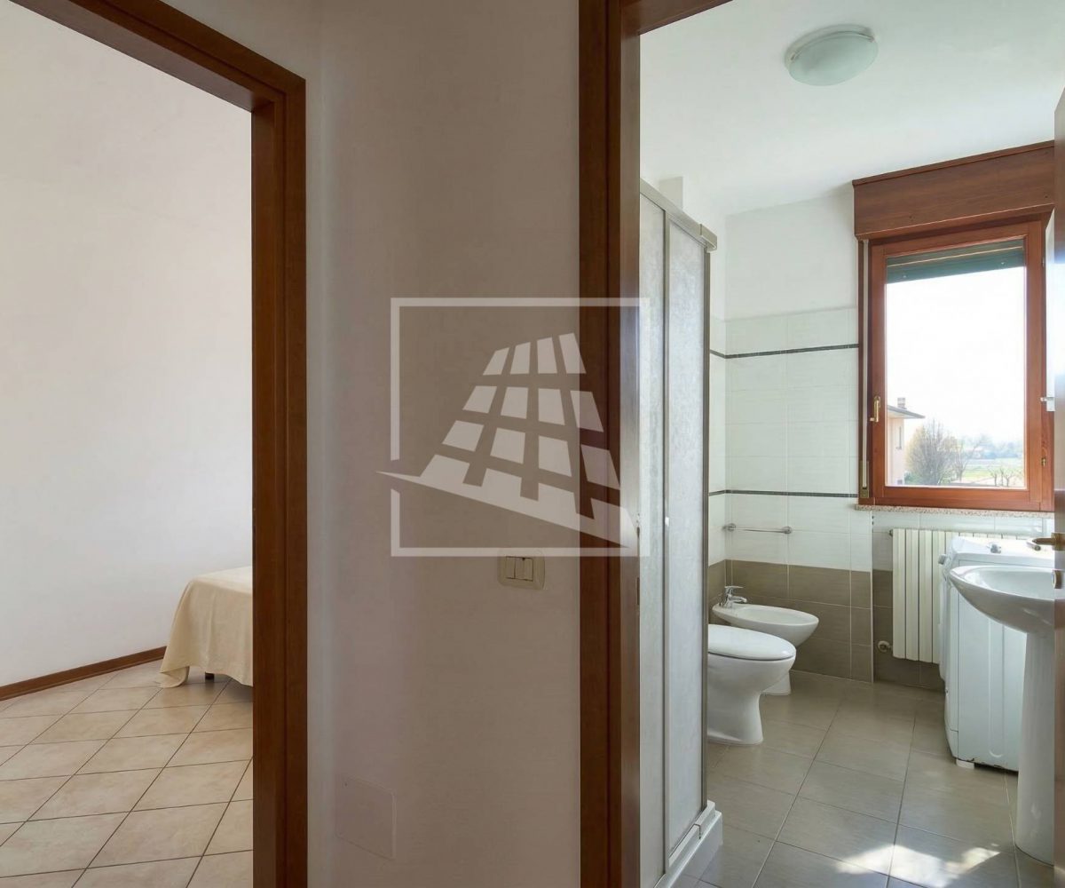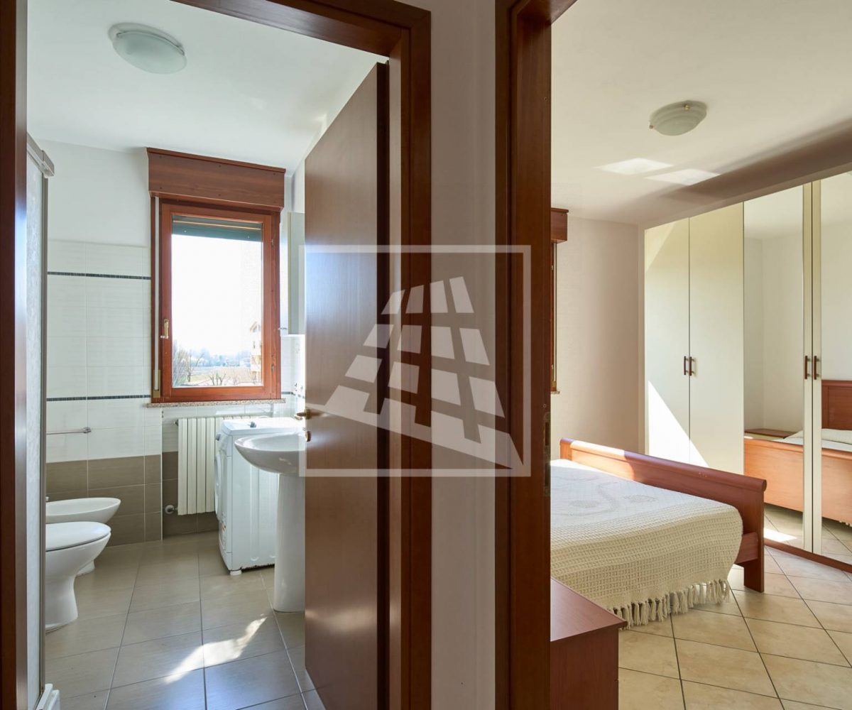 Il disimpegno separa la zona living dalla zona notte, la quale ospita due ampie camere matrimoniali e un bagno finestrato completo di box doccia.