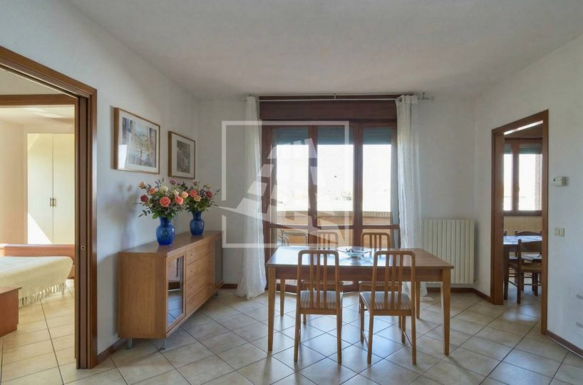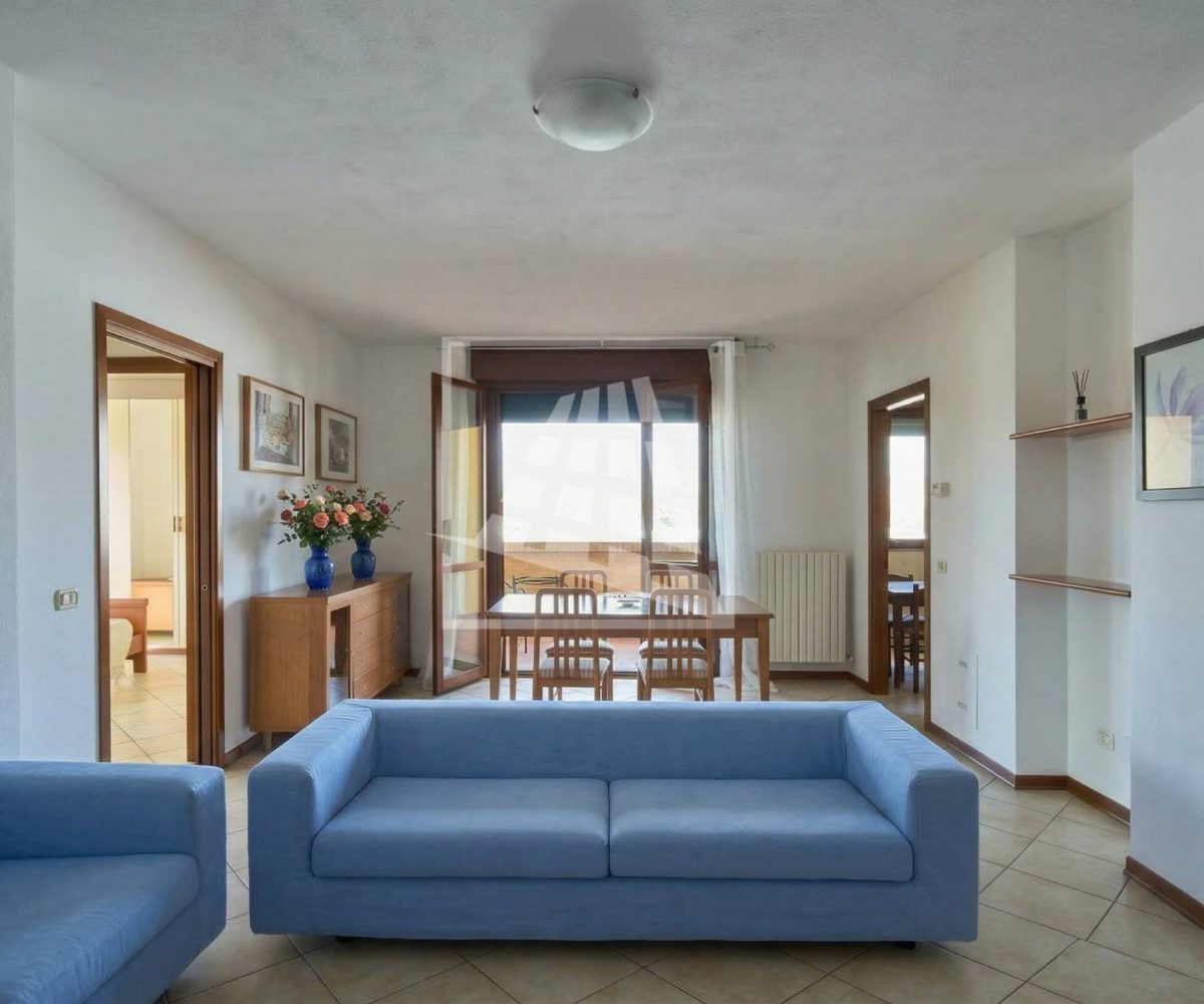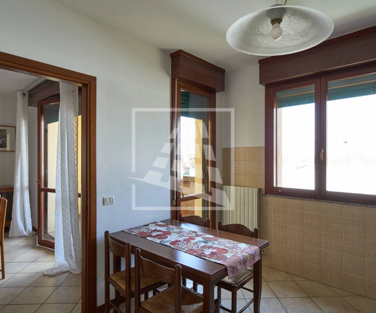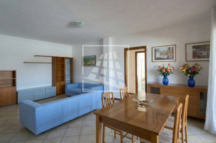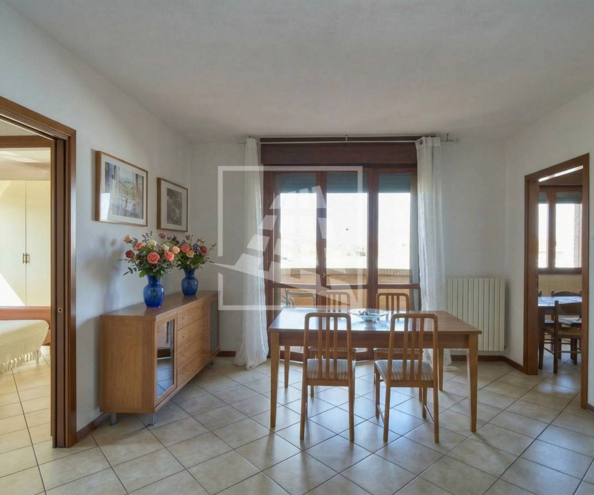 L’immobile è composto da un luminoso soggiorno con zona pranzo, ambiente che si estende verso una loggia vivibile collegata direttamente alla cucina abitabile.