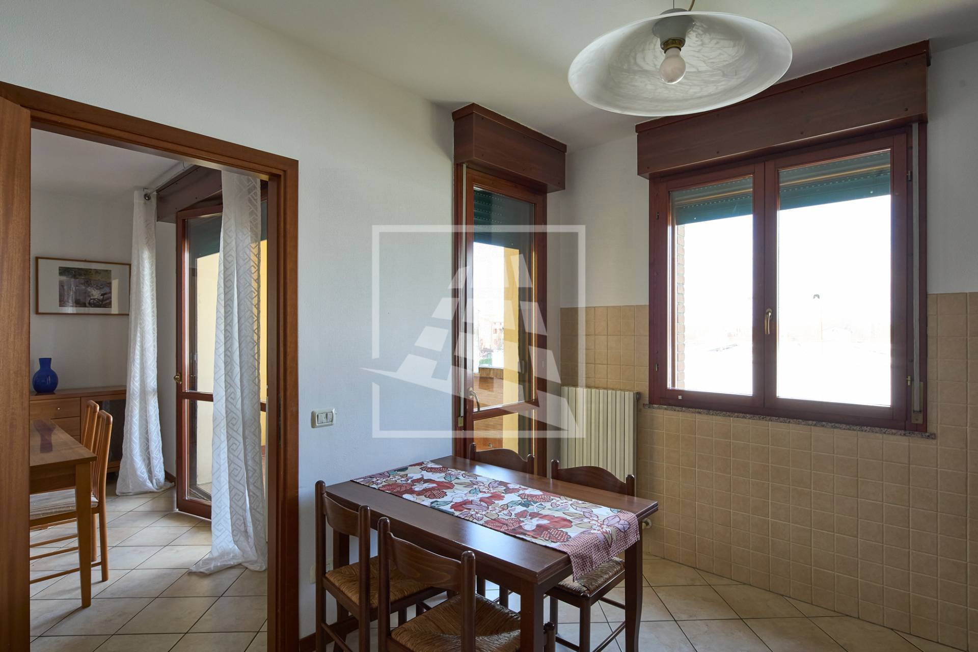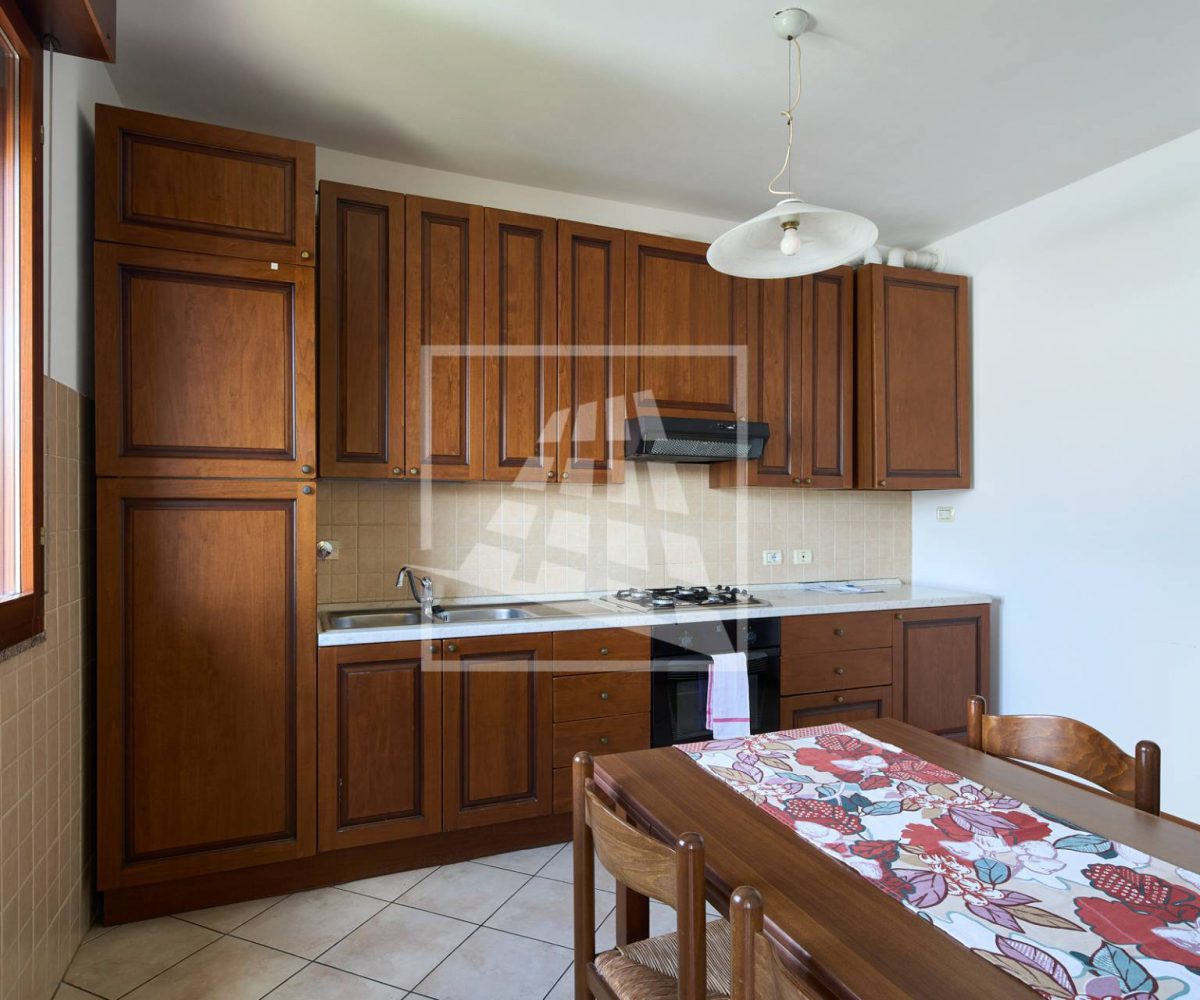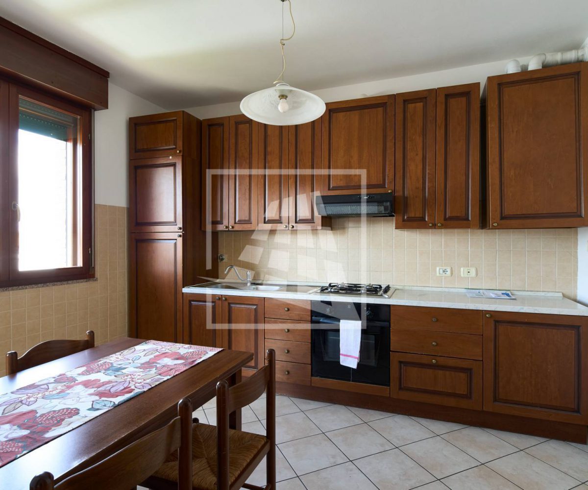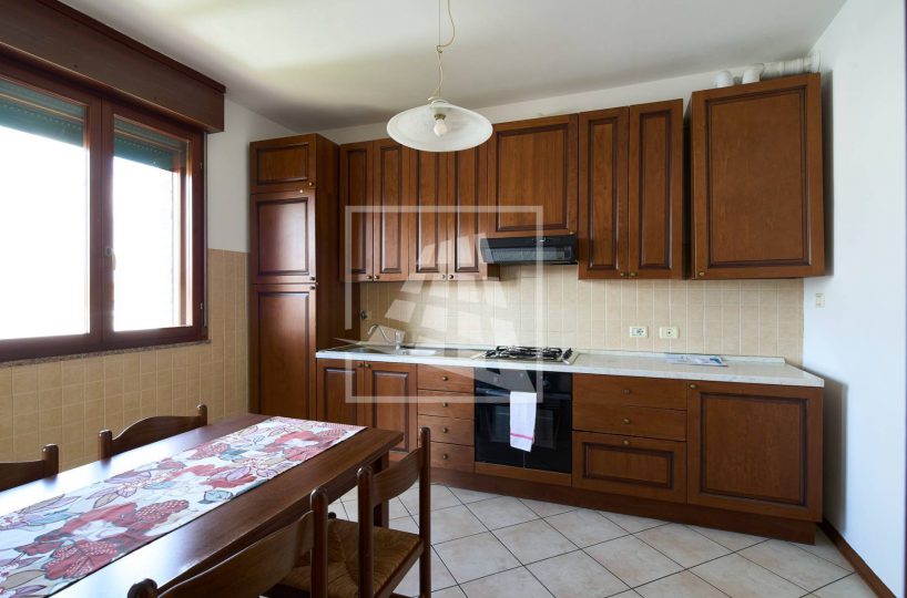 L’immobile è composto da un luminoso soggiorno con zona pranzo, ambiente che si estende verso una loggia vivibile collegata direttamente alla cucina abitabile.