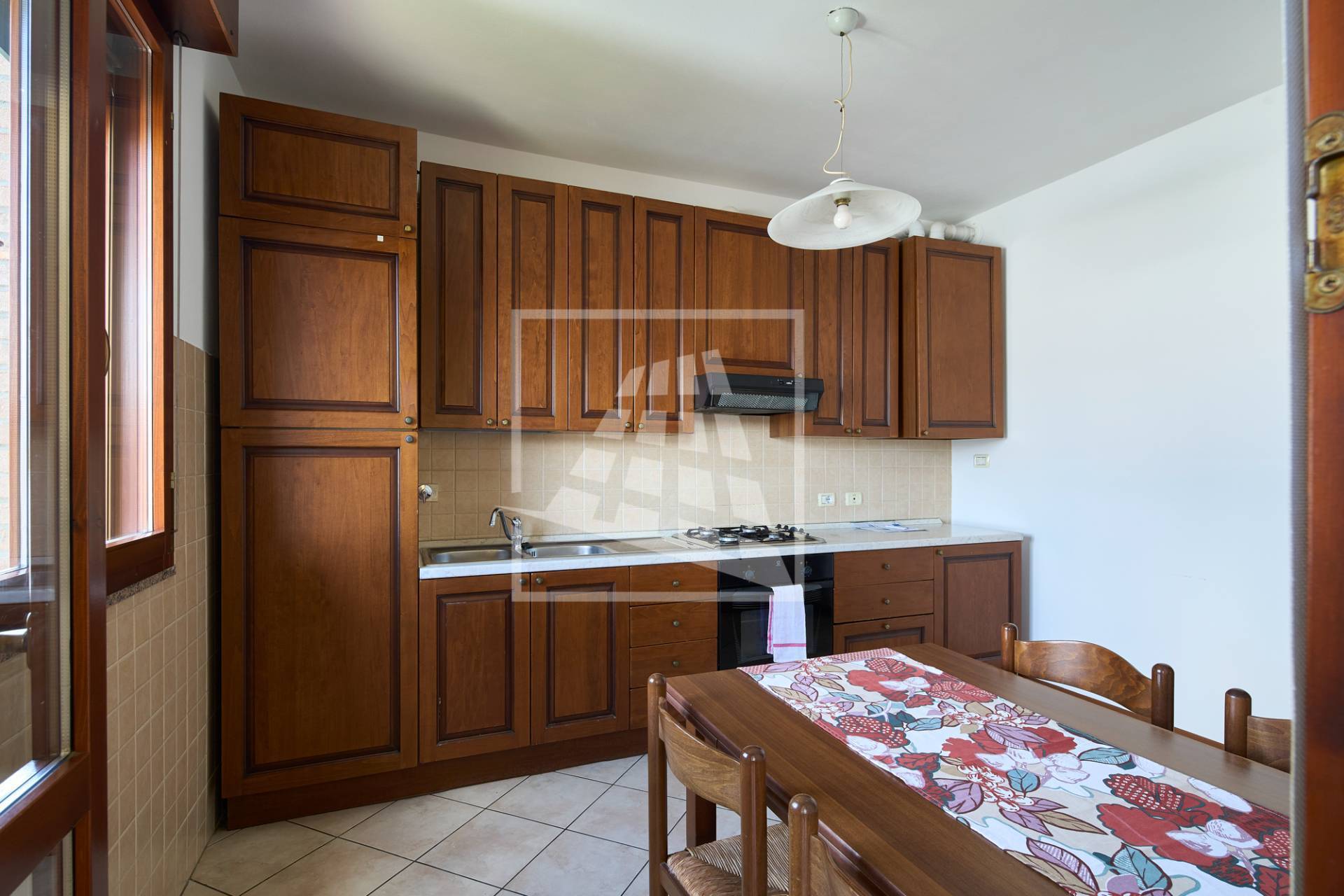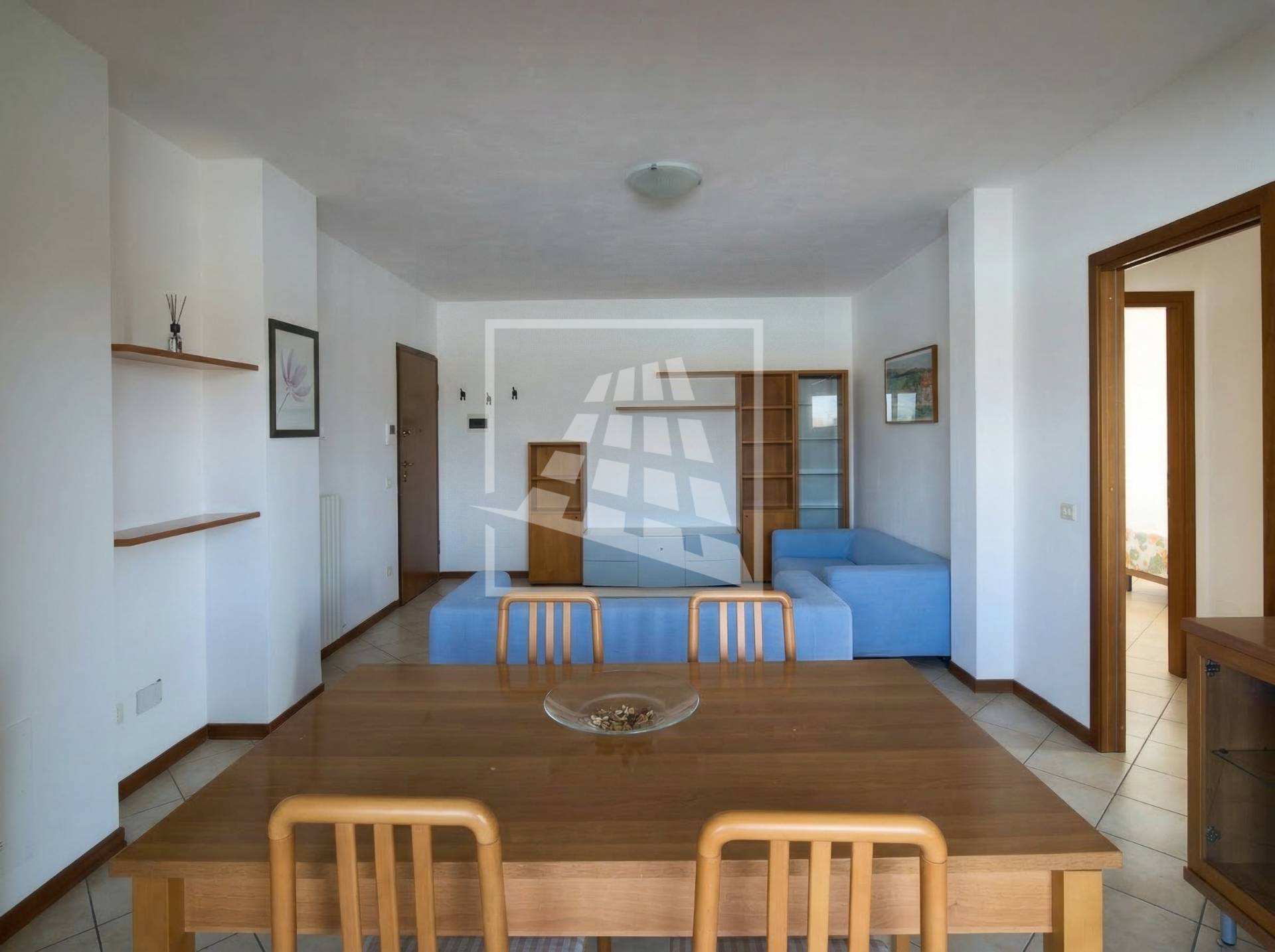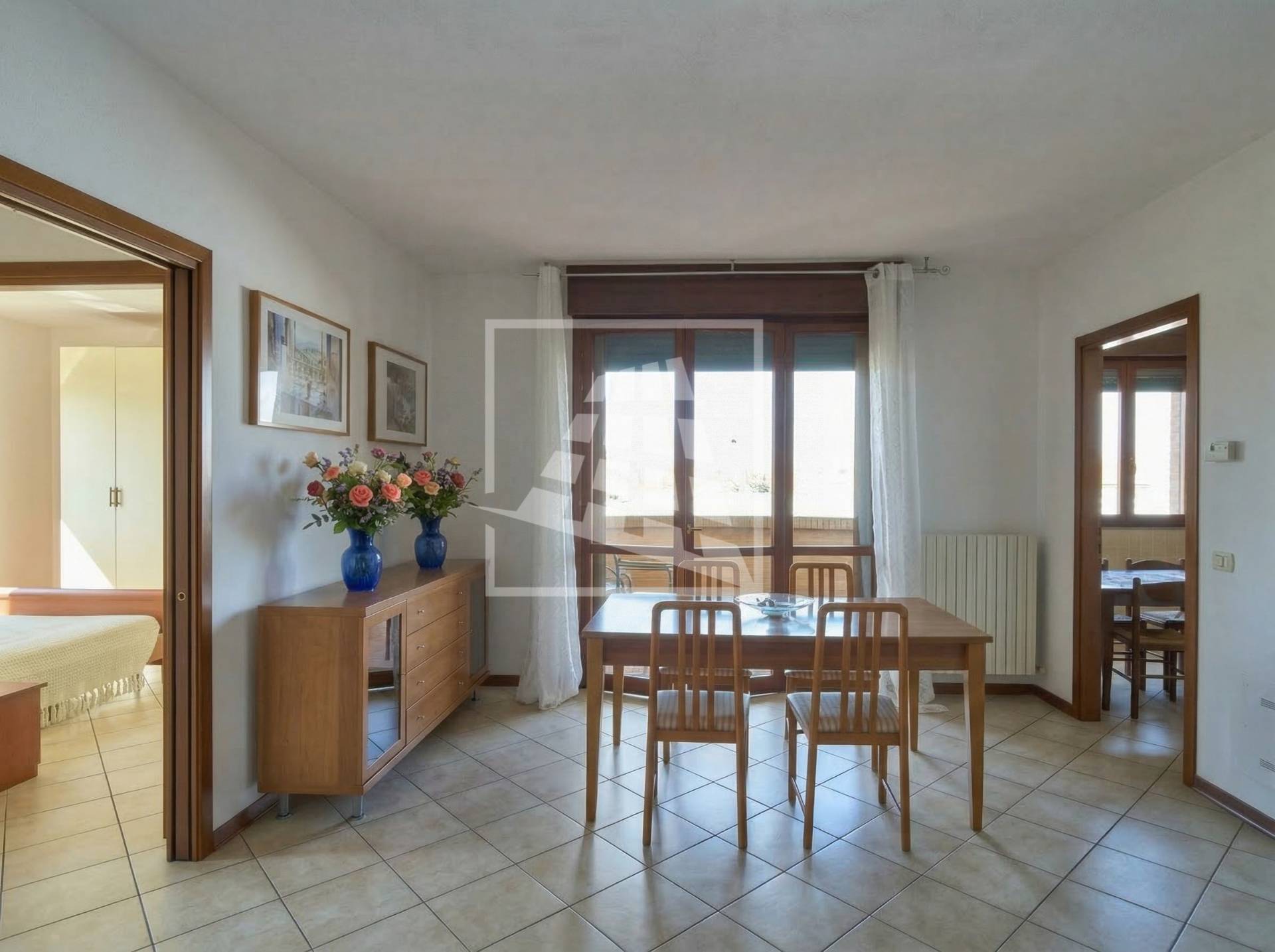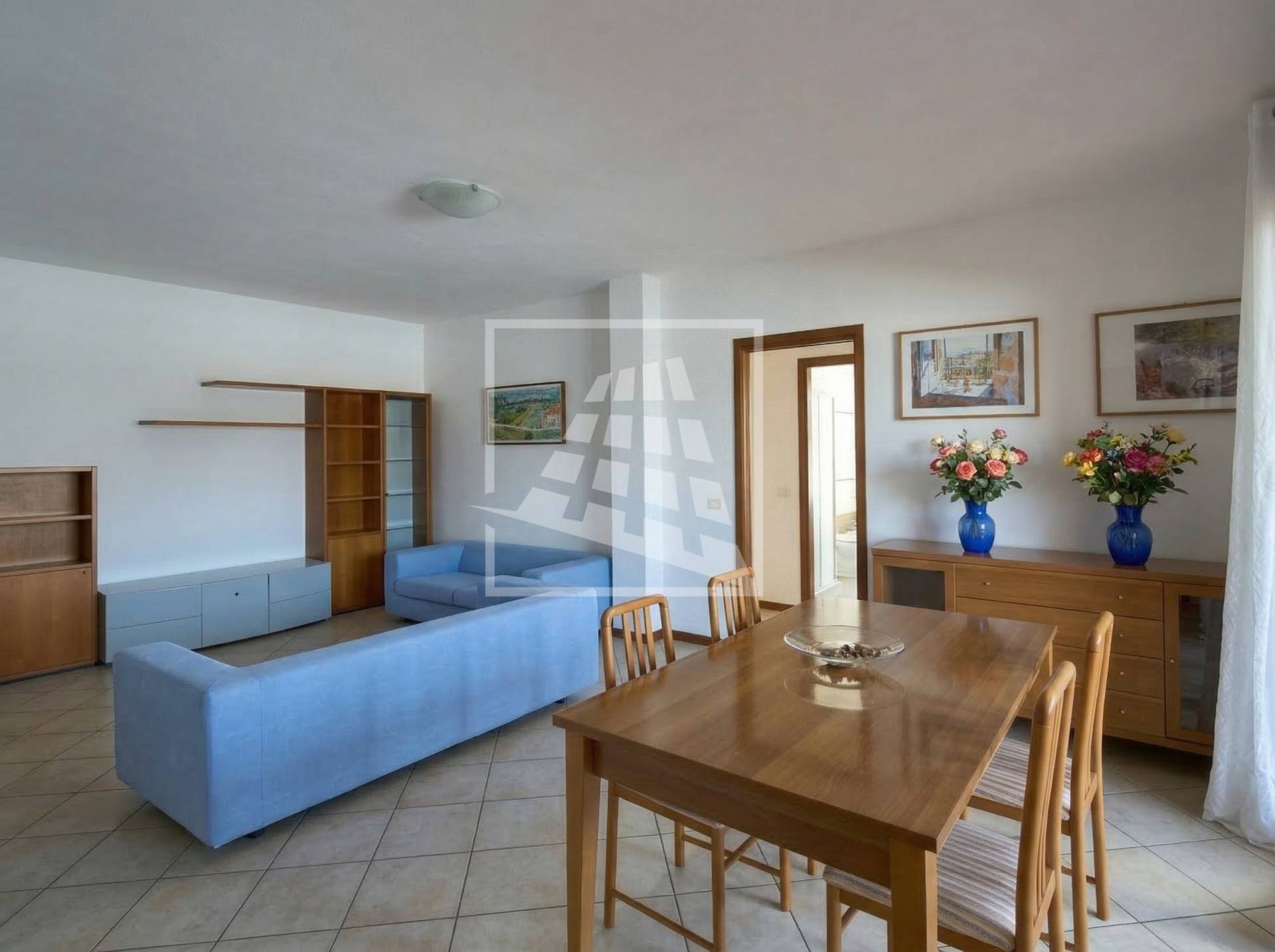L’immobile è composto da un luminoso soggiorno con zona pranzo, ambiente che si estende verso una loggia vivibile collegata direttamente alla cucina abitabile.