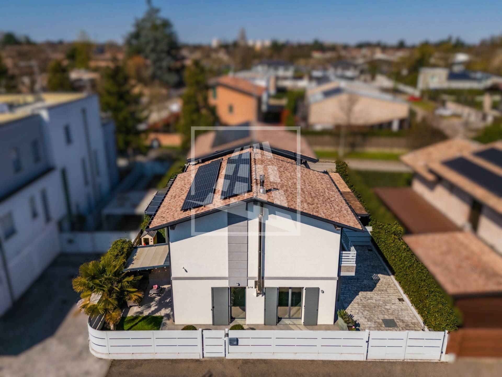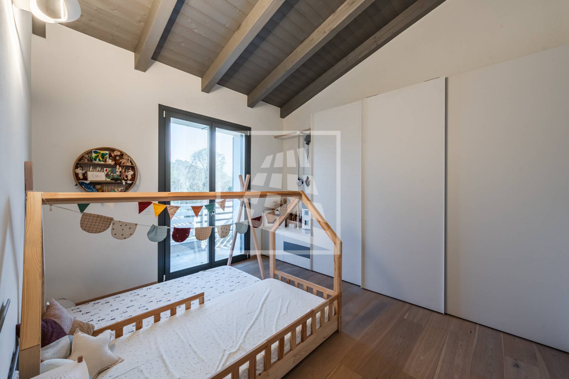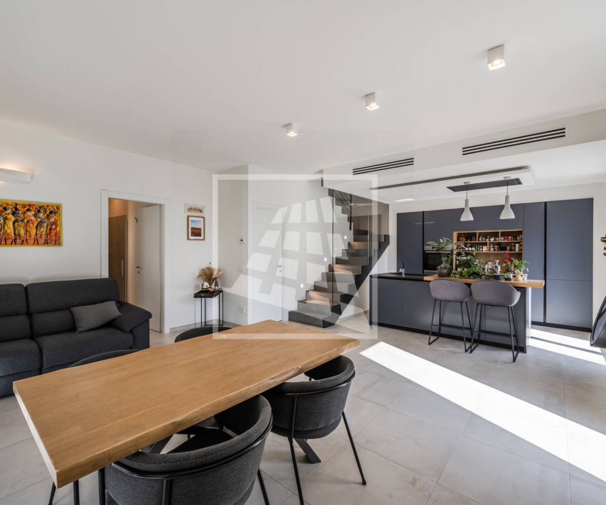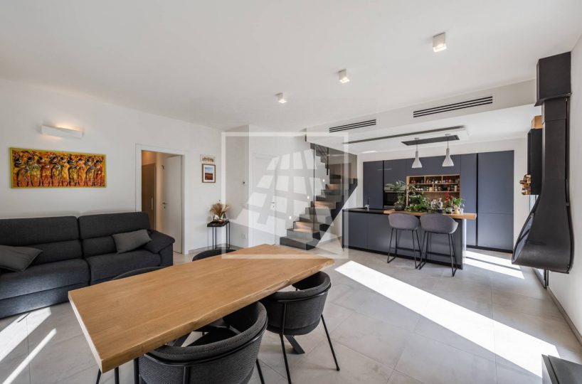 Villa abbinata di recente costruzione, caratterizzata da una distribuzione funzionale su due livelli e una privilegiata esposizione Nord-Sud-Est che garantisce luminosità naturale per l’intera giornata.
