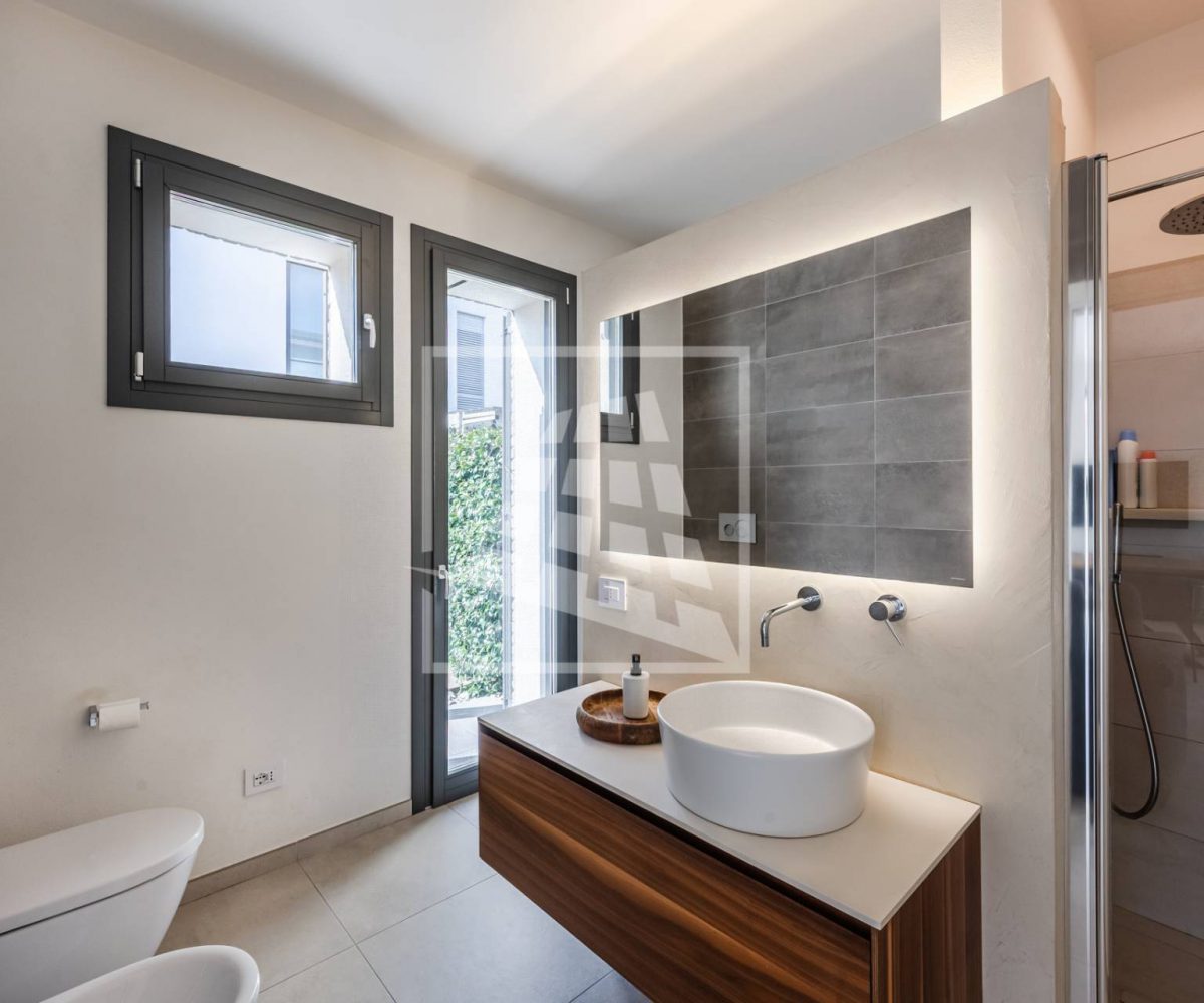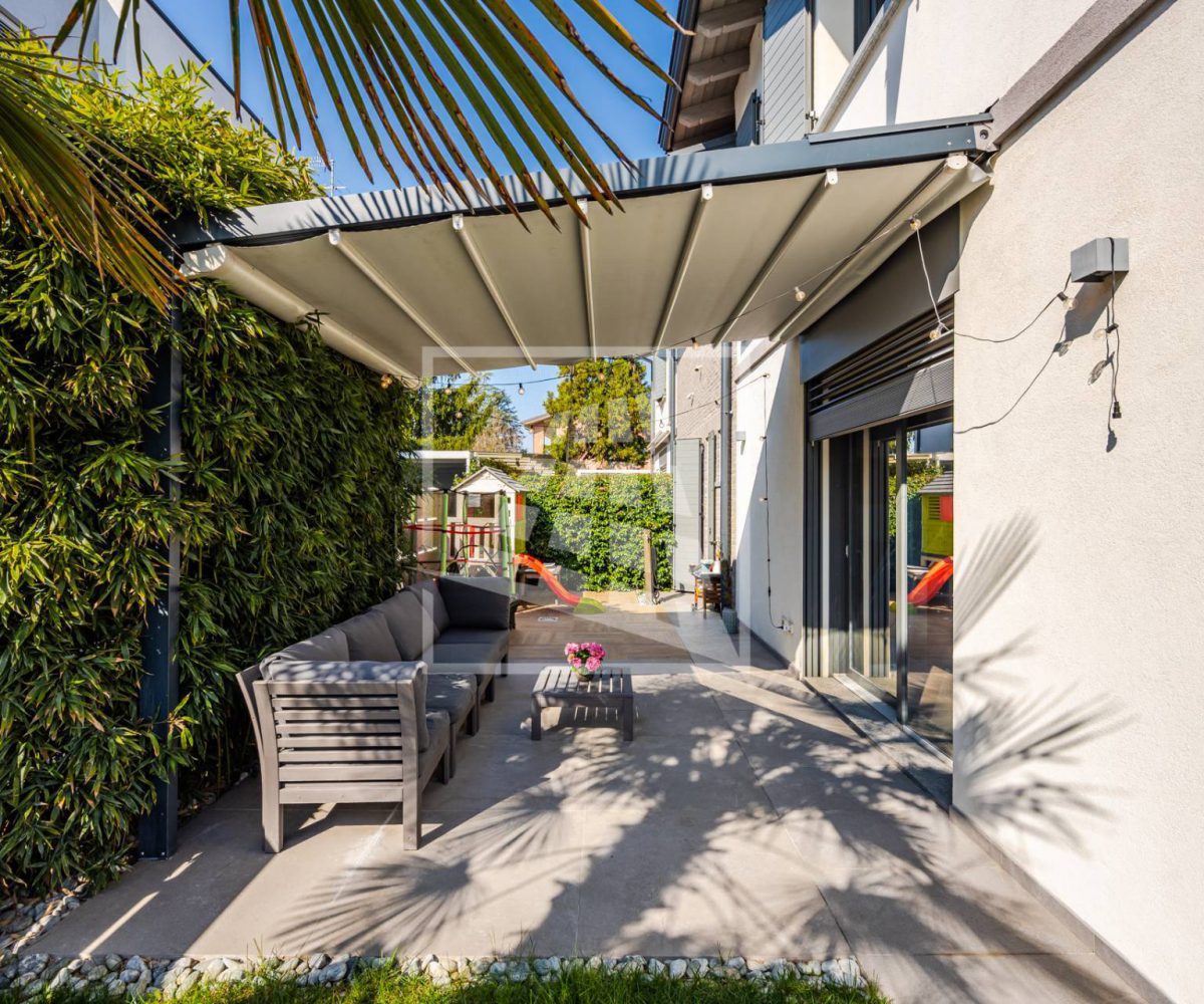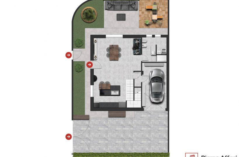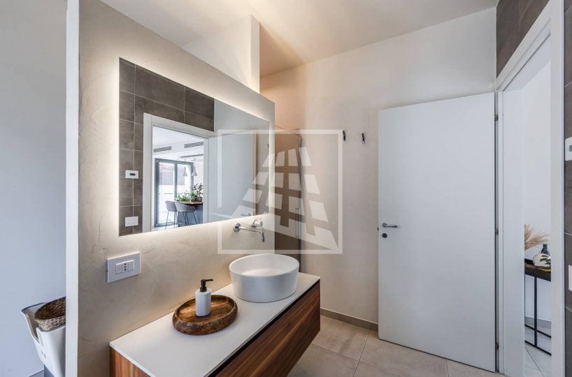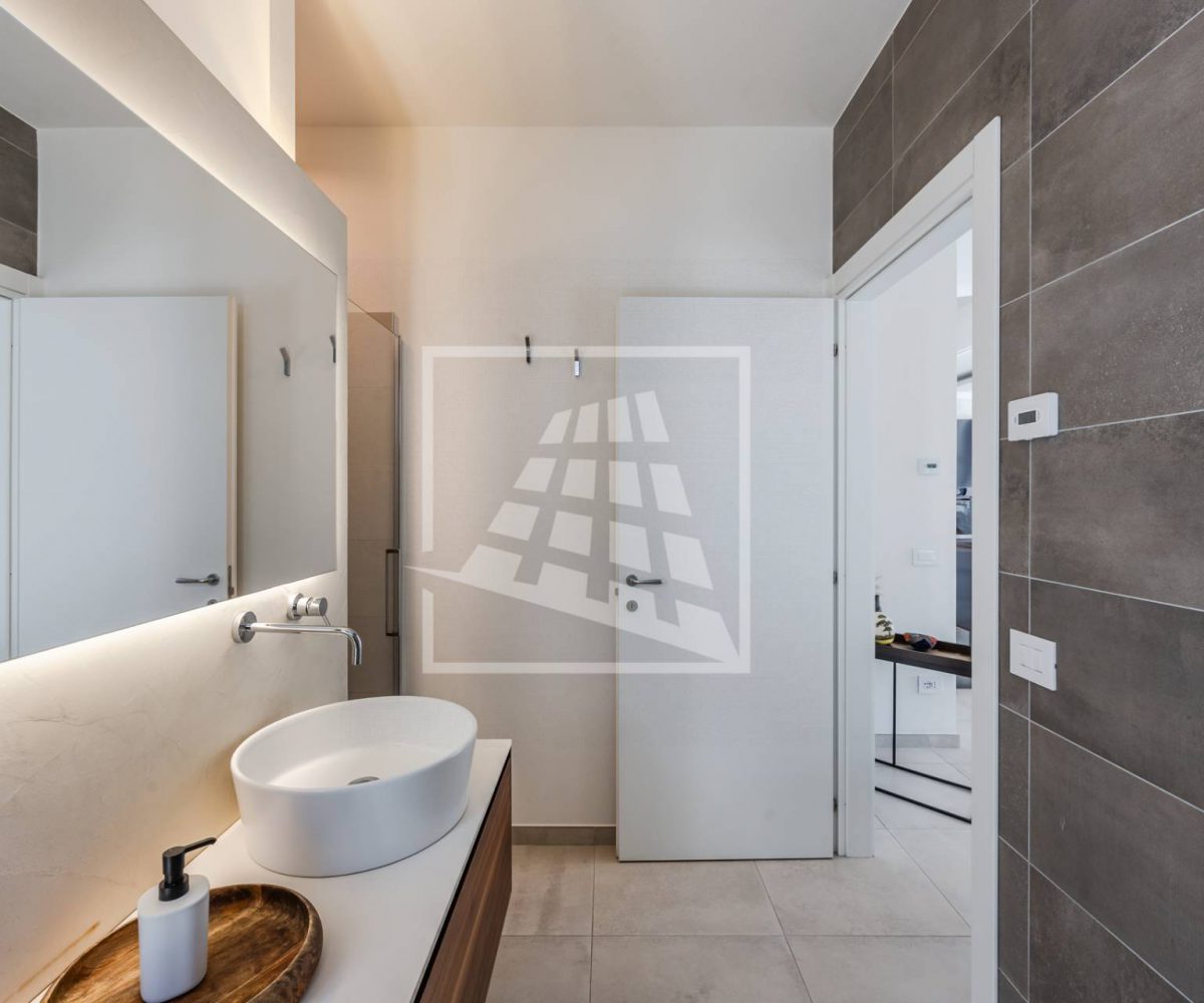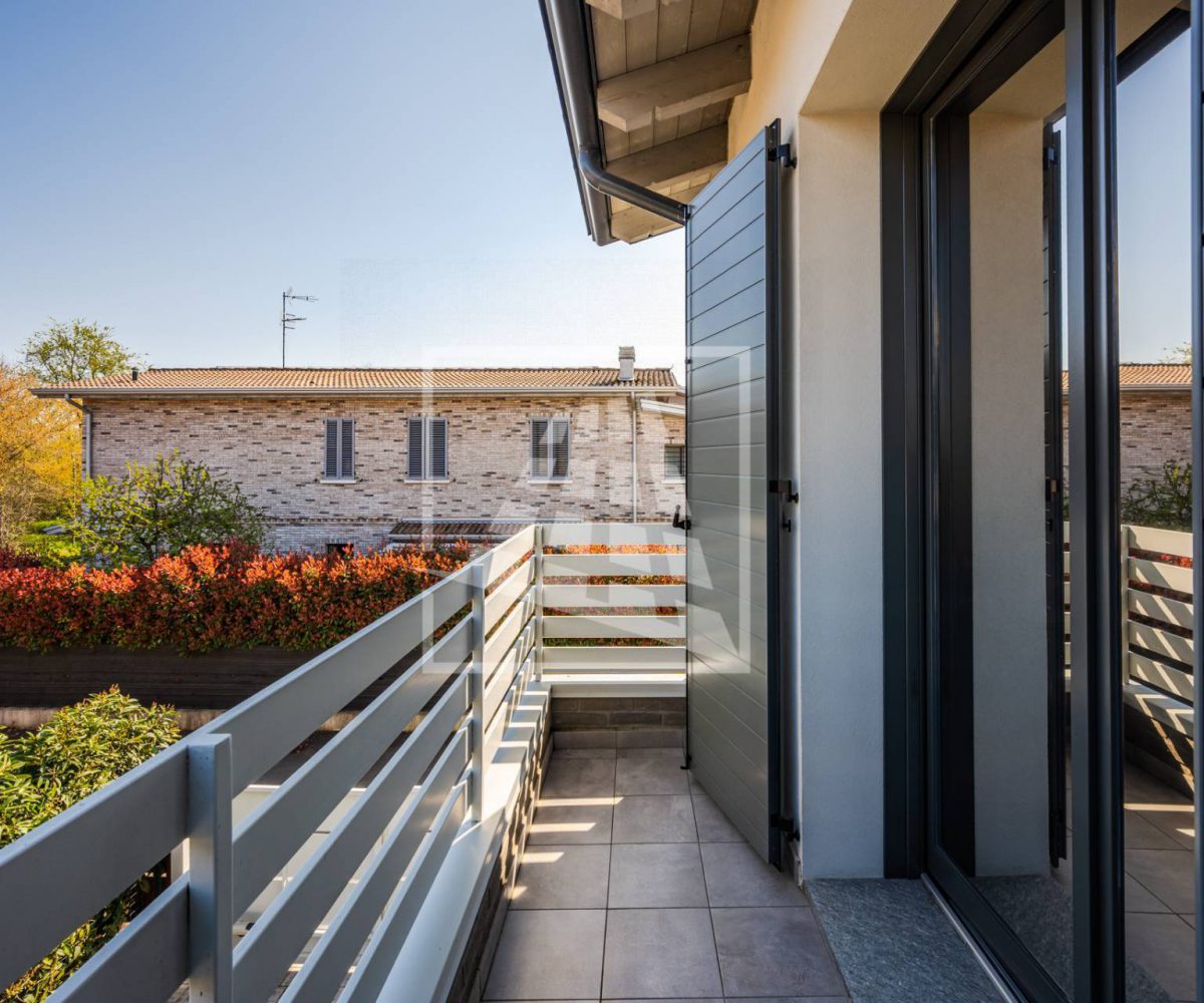 Da questa zona si accede direttamente al giardino privato dotato di illuminazione, in parte pavimentato e valorizzato da una comoda pergotenda elettrica, ideale per pranzare all’aperto e godere della massima privacy.