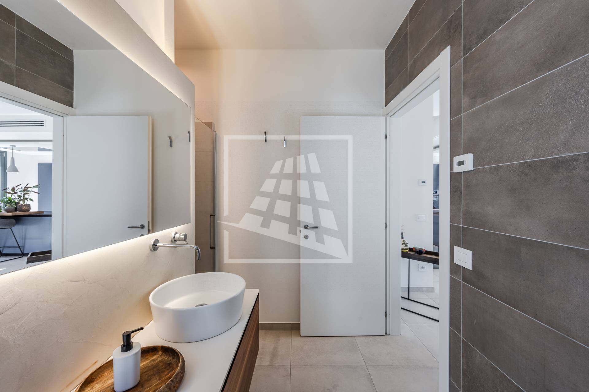 Qui, un disimpegno conduce a due camere da letto matrimoniali (di cui una con balcone), un secondo bagno finestrato e una spaziosa camera padronale anch’essa matrimoniale, servita da cabina armadio e ampia loggia.