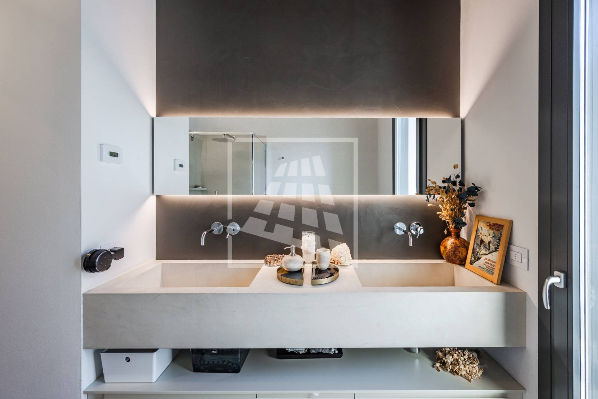 L’immobile vanta finiture di pregio e dotazioni tecnologiche di ultima generazione, tra cui impianto fotovoltaico con batterie di accumulo, addolcitore, sistema di videosorveglianza, allarme, un sofisticato impianto di raffrescamento a pavimento e un impianto di deumidificazione sia per la zona giorno che per la zona notte.