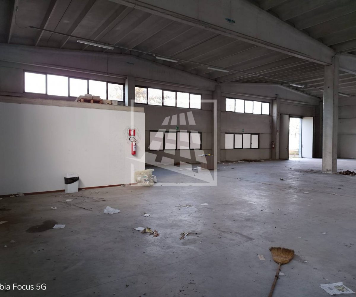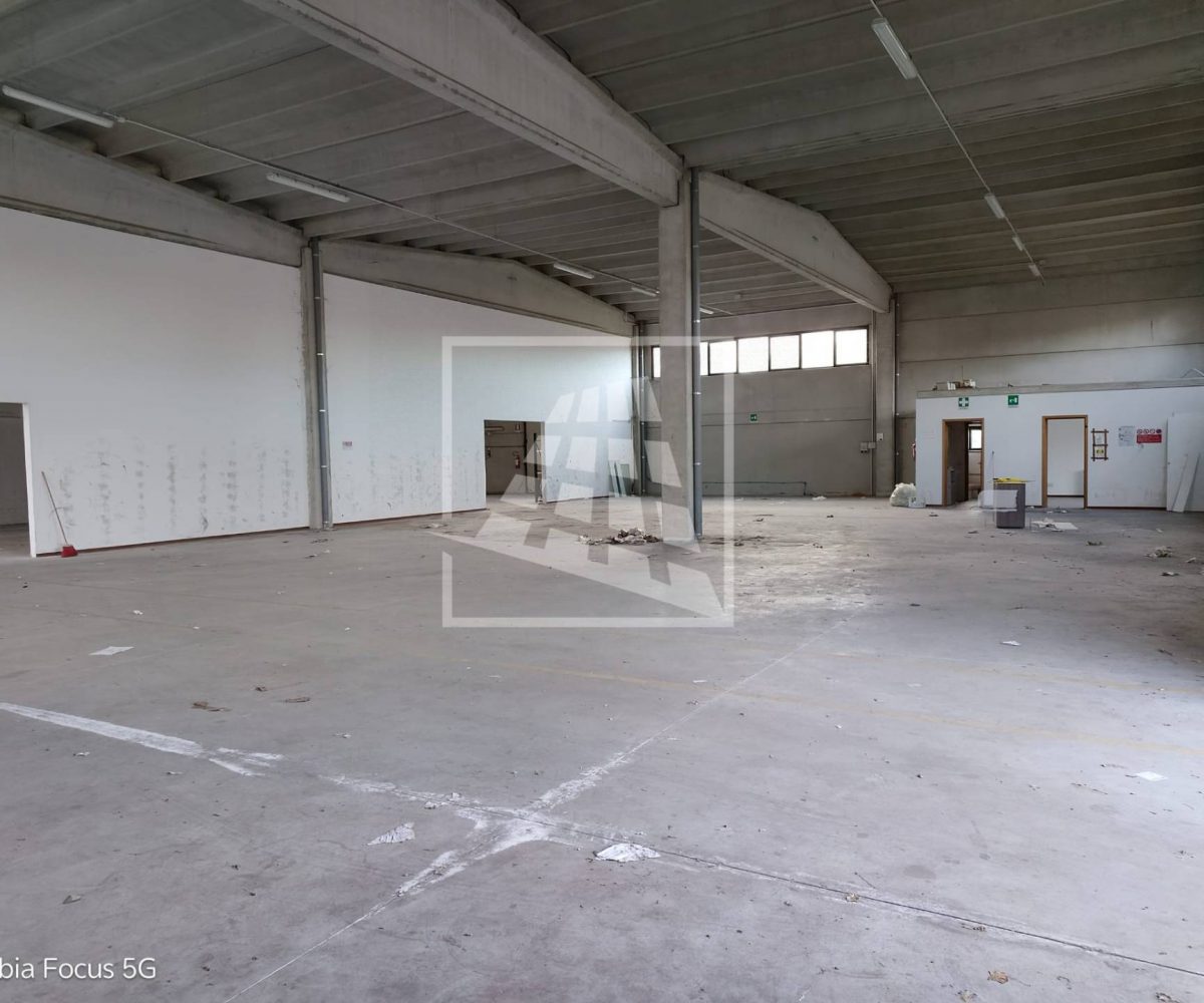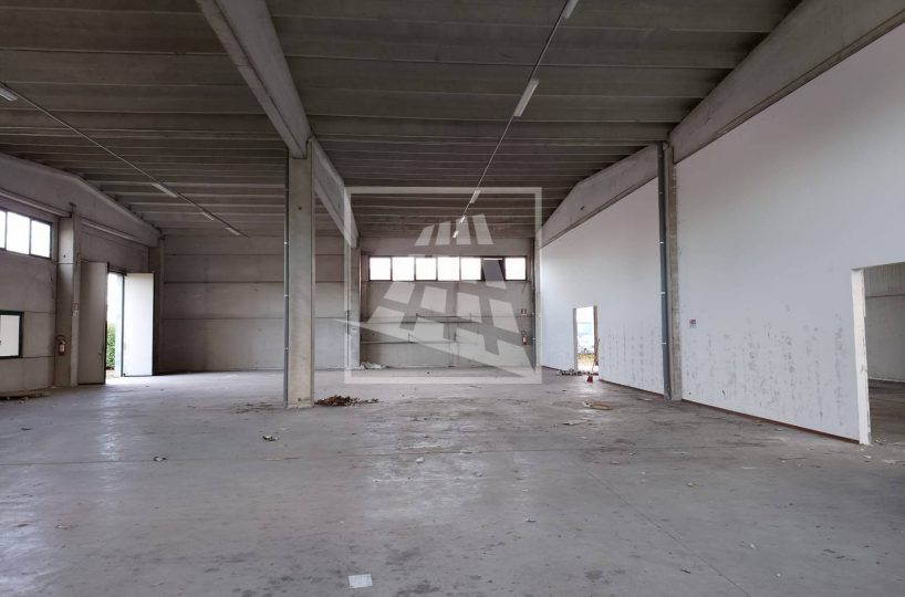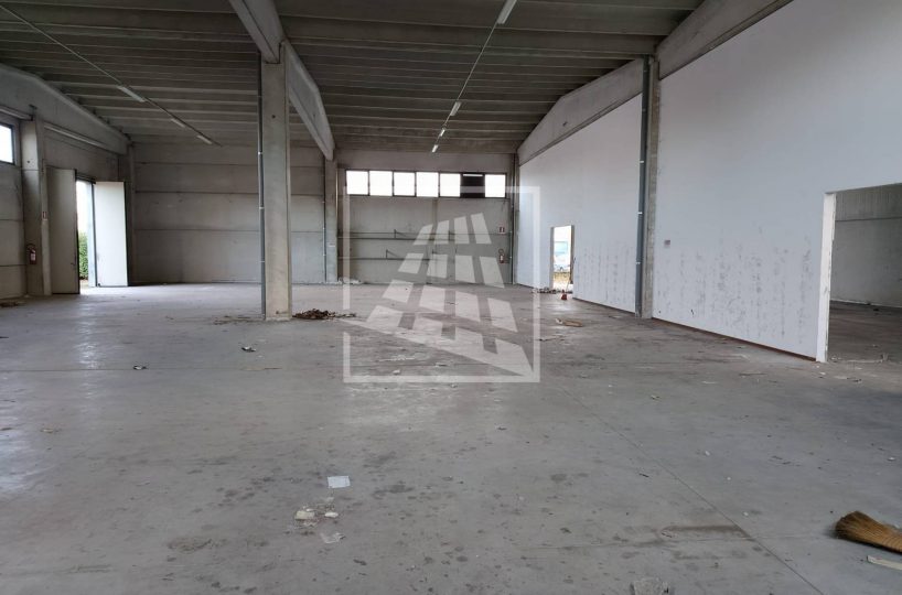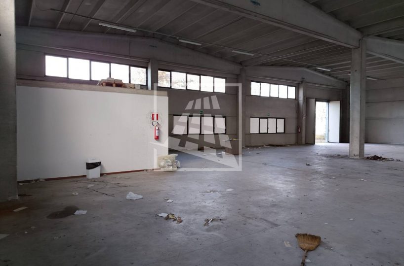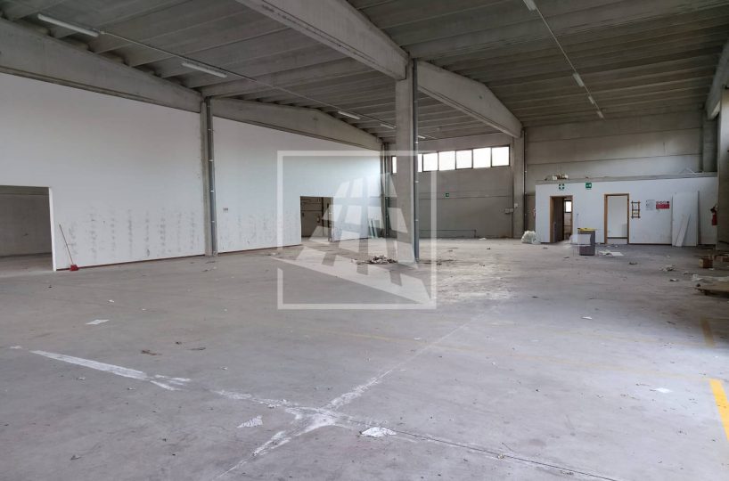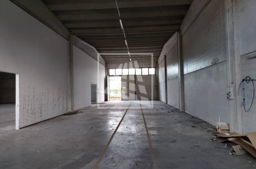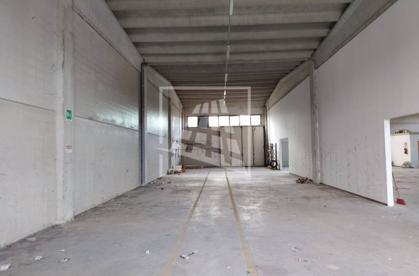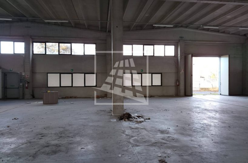Reggio Ovest – Capannone di testa (Rif. VJ0052) Capannone di testa per una superficie di mq 790 per altezza m 6,00, munito di quattro portoni carrai, oltre a ufficio e servizio di mq 38 e soppalco di mq 38. Corpi illuminanti e impianti a norma. Area cortiliva di mq 750 circa. Discreta area di manovra.