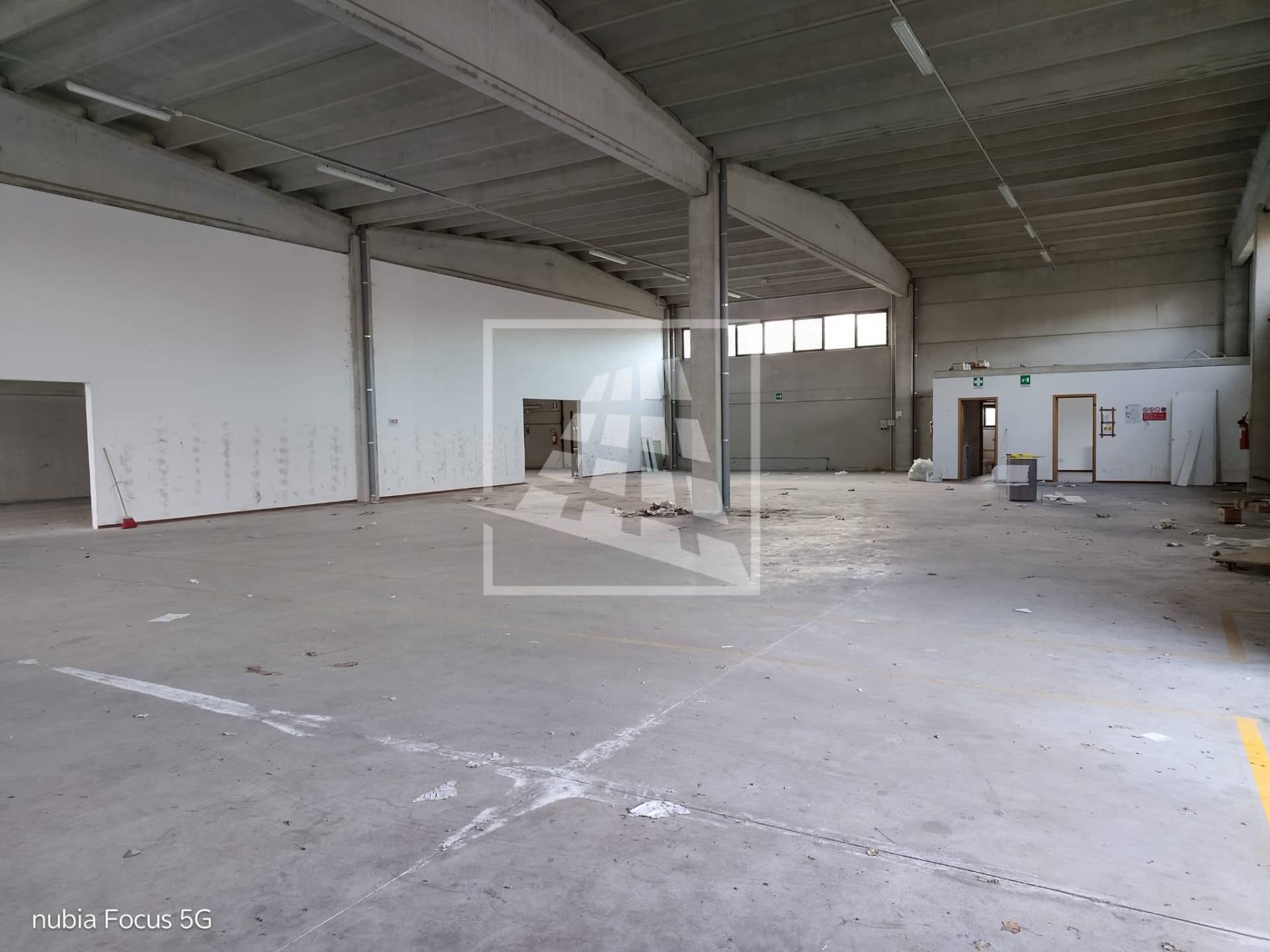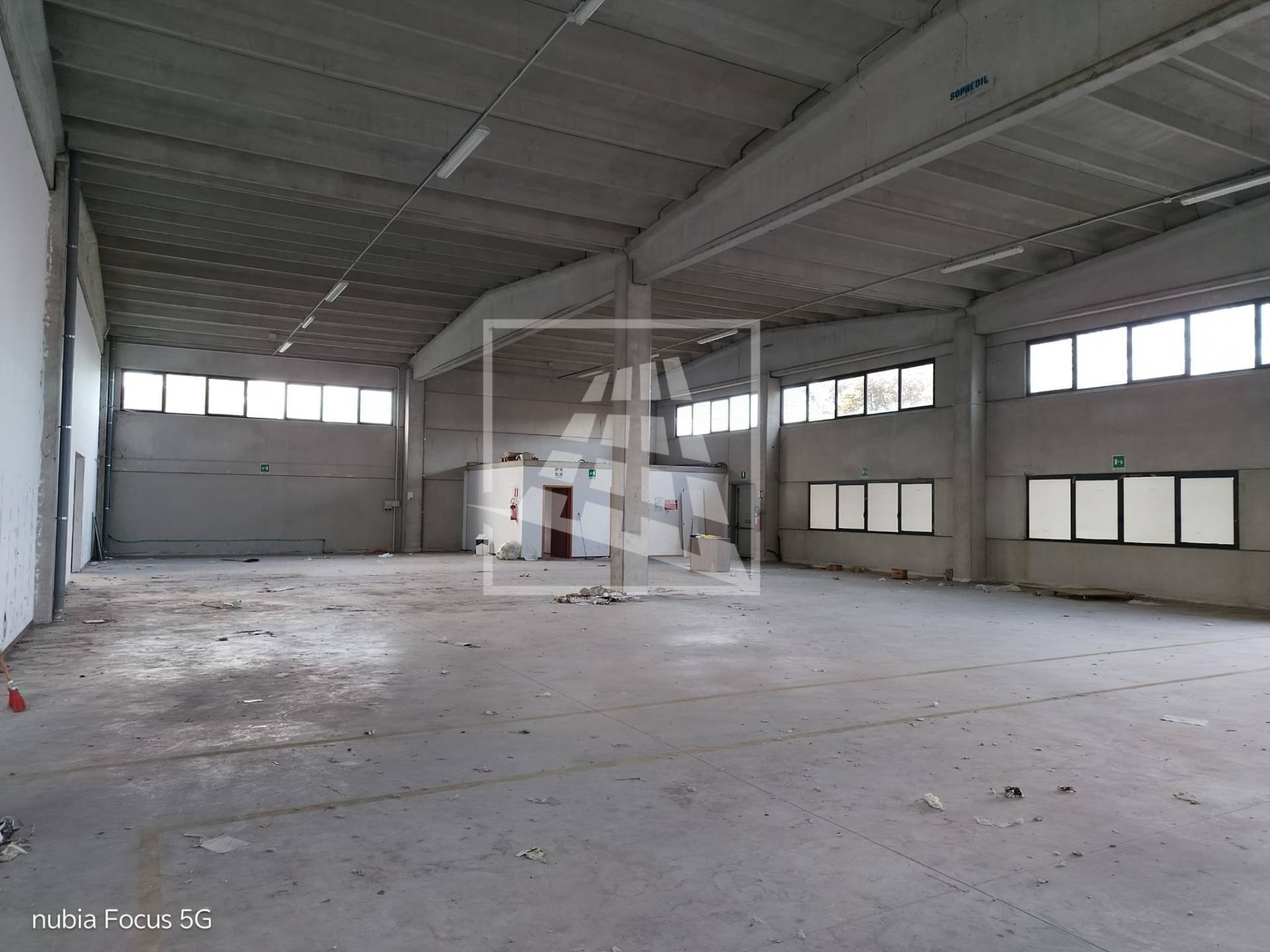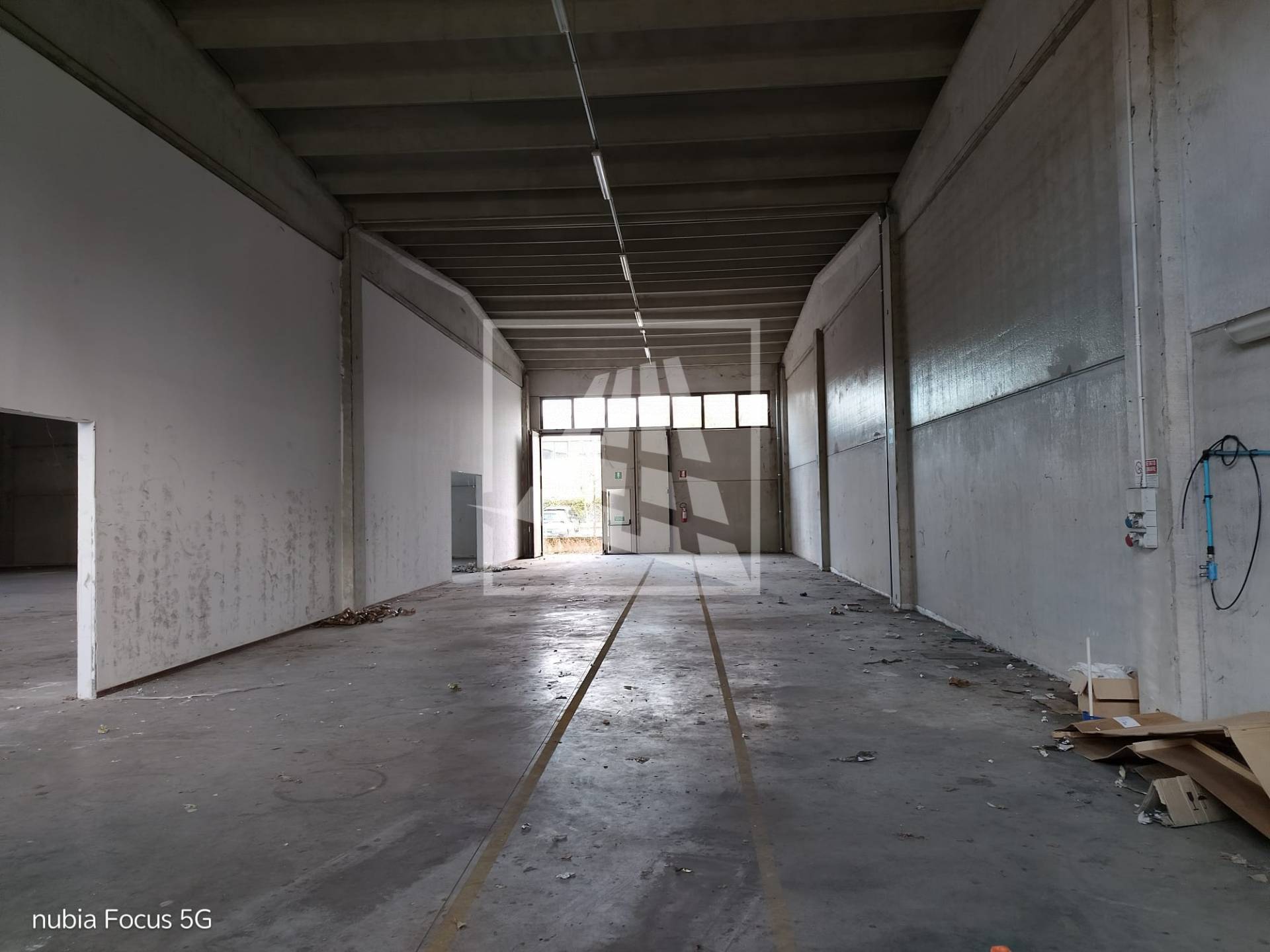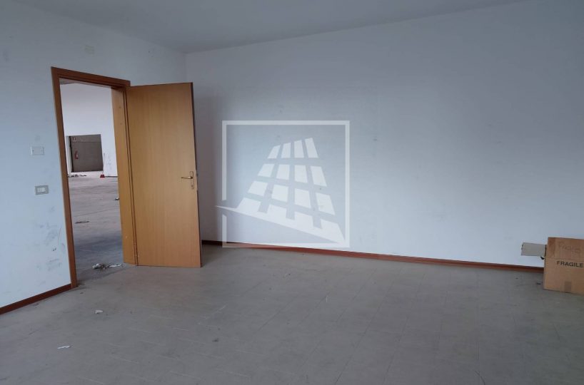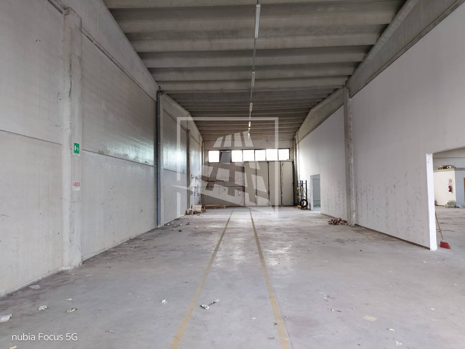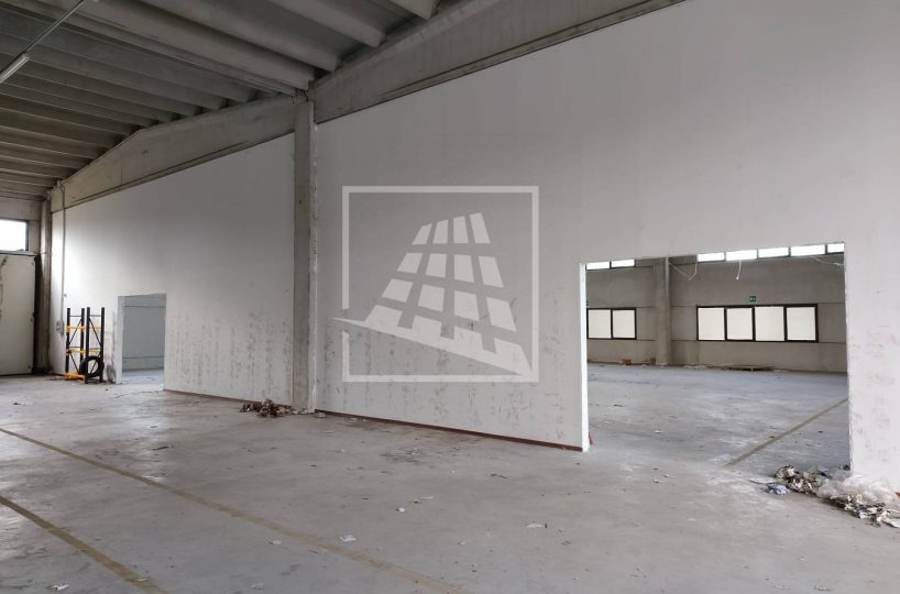 Reggio Ovest – Capannone di testa (Rif. VJ0052) Capannone di testa per una superficie di mq 790 per altezza m 6,00, munito di quattro portoni carrai, oltre a ufficio e servizio di mq 38 e soppalco di mq 38. Corpi illuminanti e impianti a norma. Area cortiliva di mq 750 circa. Discreta area di manovra.