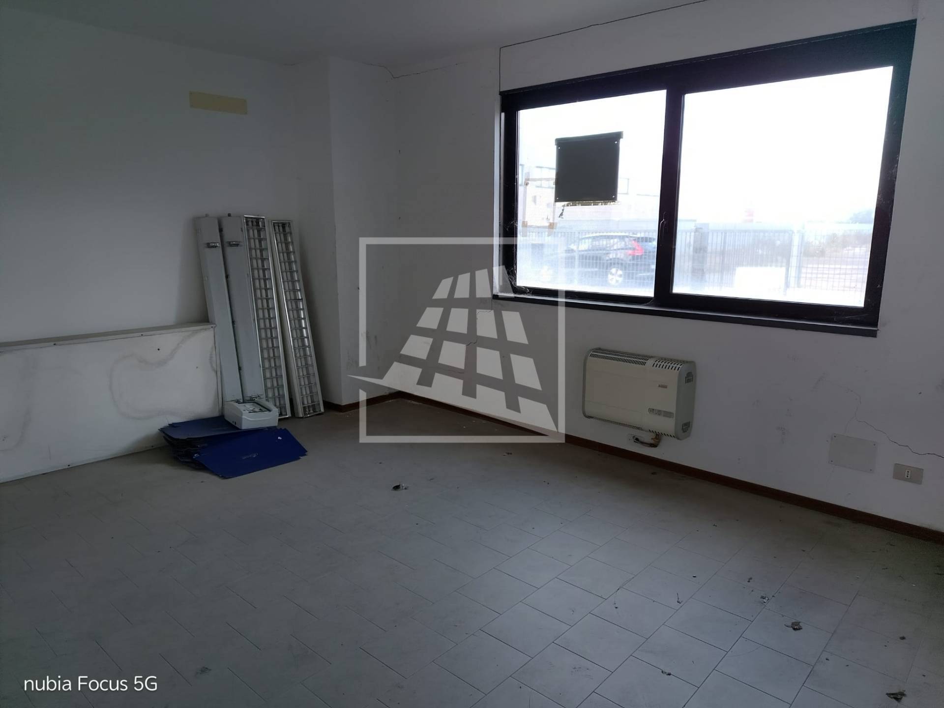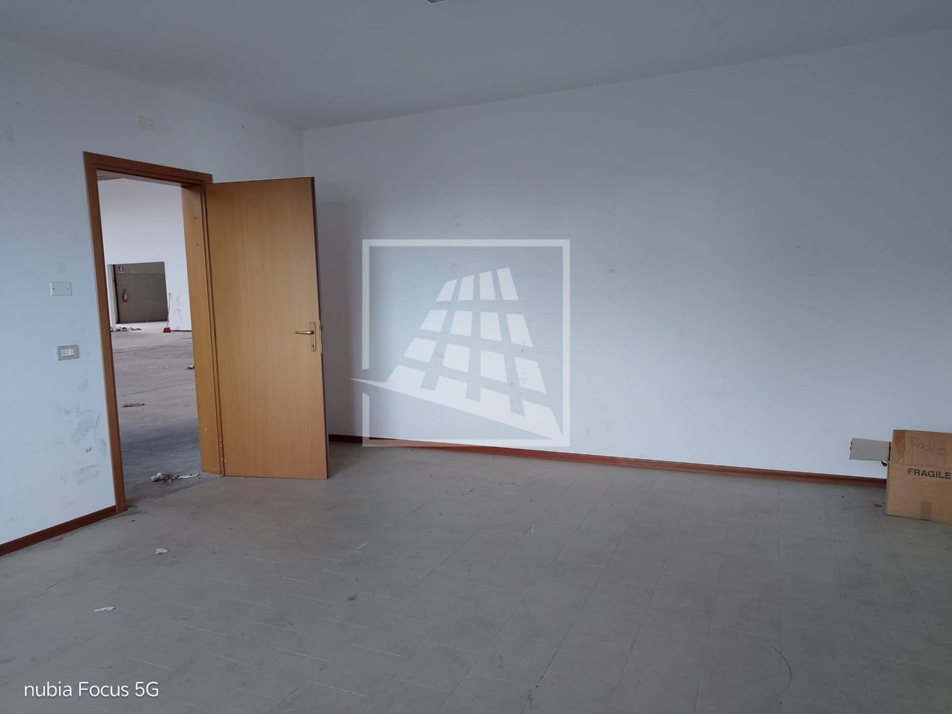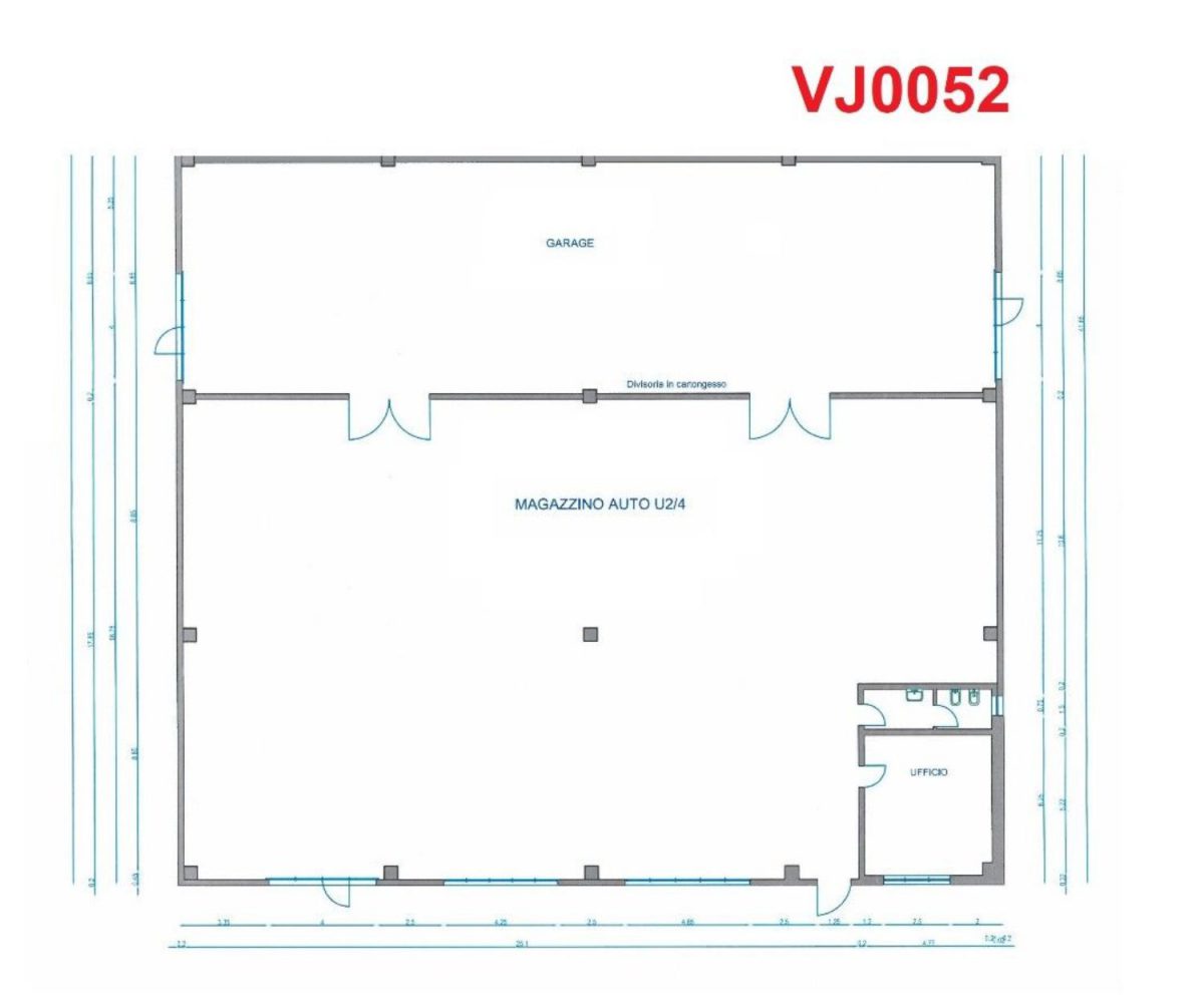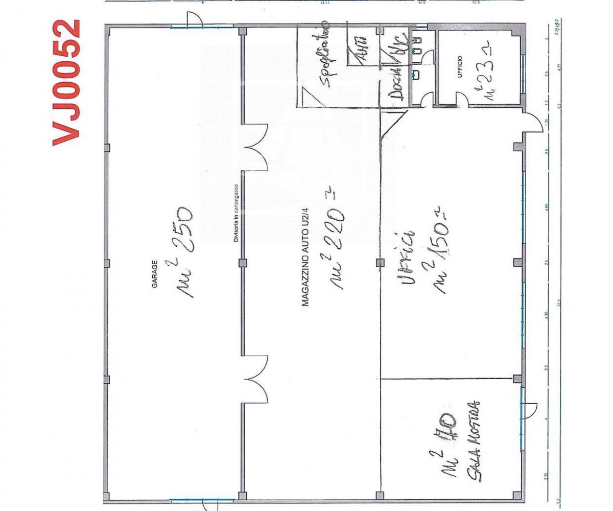 Reggio Ovest – Capannone di testa (Rif. VJ0052) Capannone di testa per una superficie di mq 790 per altezza m 6,00, munito di quattro portoni carrai, oltre a ufficio e servizio di mq 38 e soppalco di mq 38. Corpi illuminanti e impianti a norma. Area cortiliva di mq 750 circa. Discreta area di manovra.