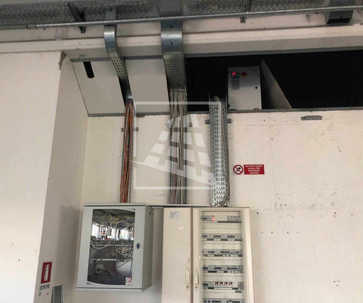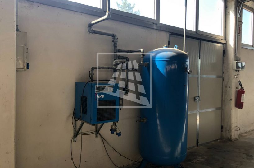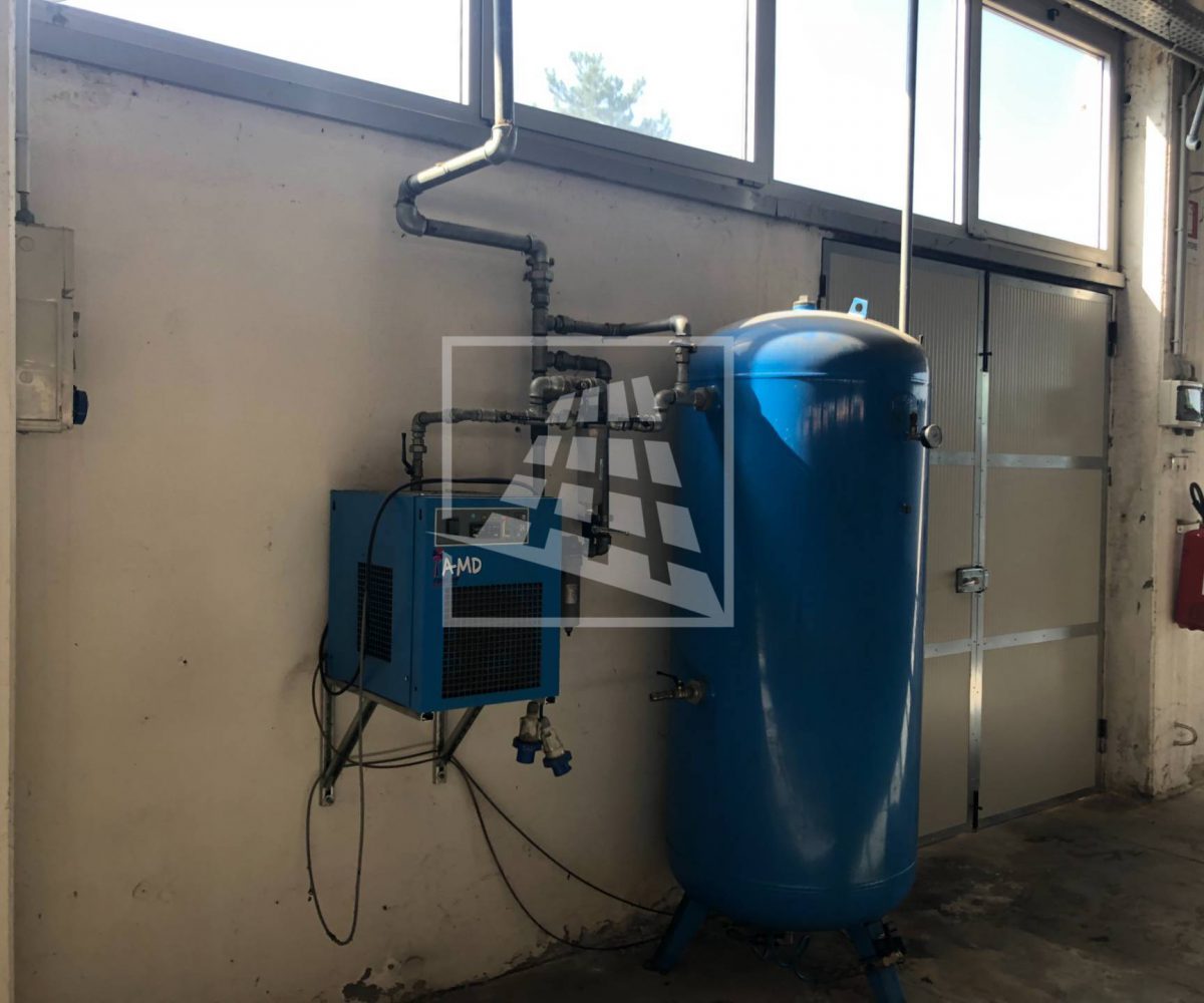 Presente impianto di illuminazione, impianto di estrazione d’aria con quattro ventole, impianto aria compressa con accumulo, rete dati, cinque calate 220/380, riscaldamento autonomo e impianto di allarme.