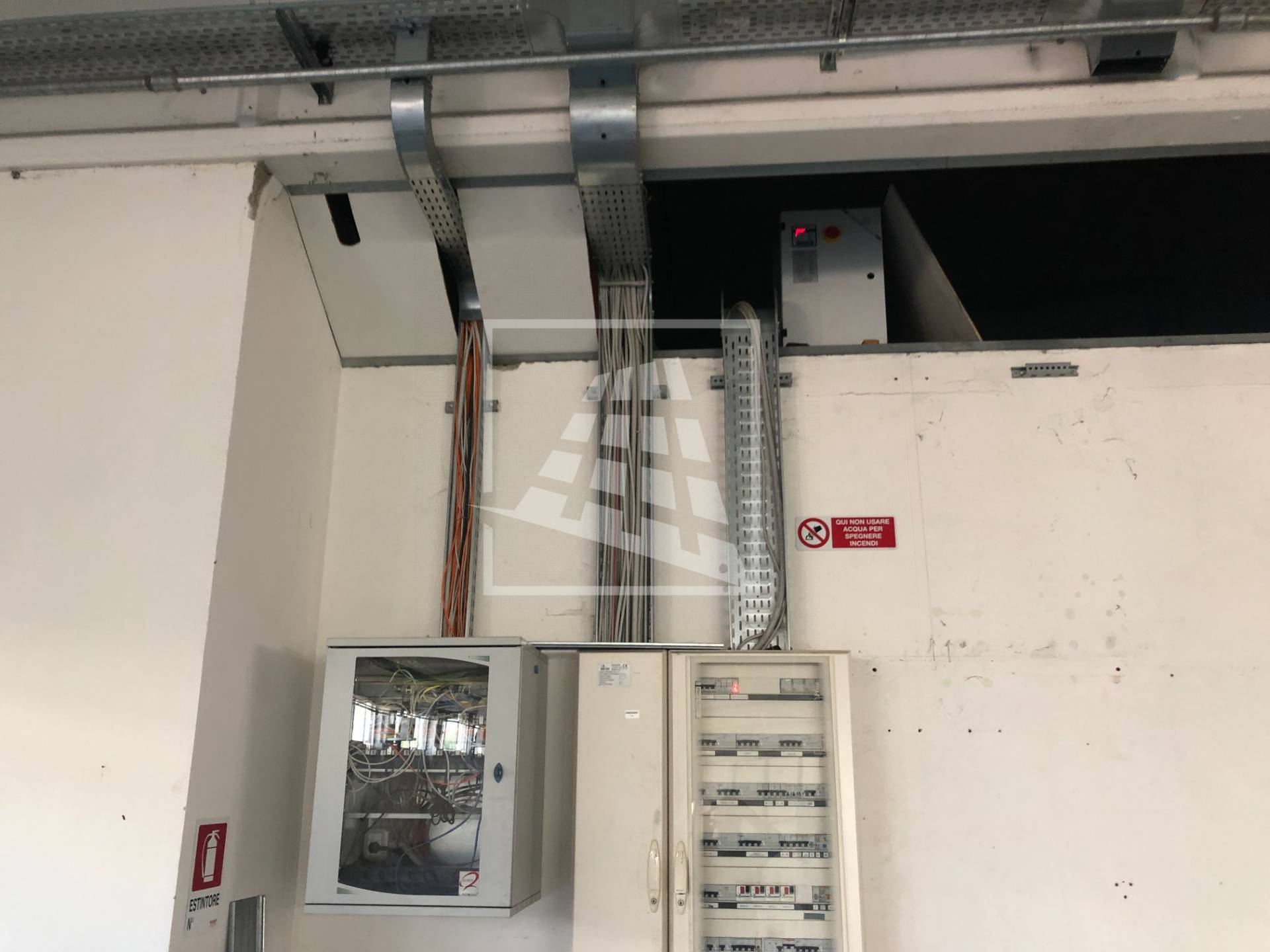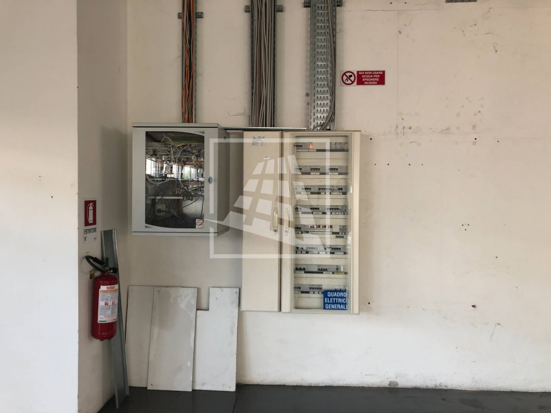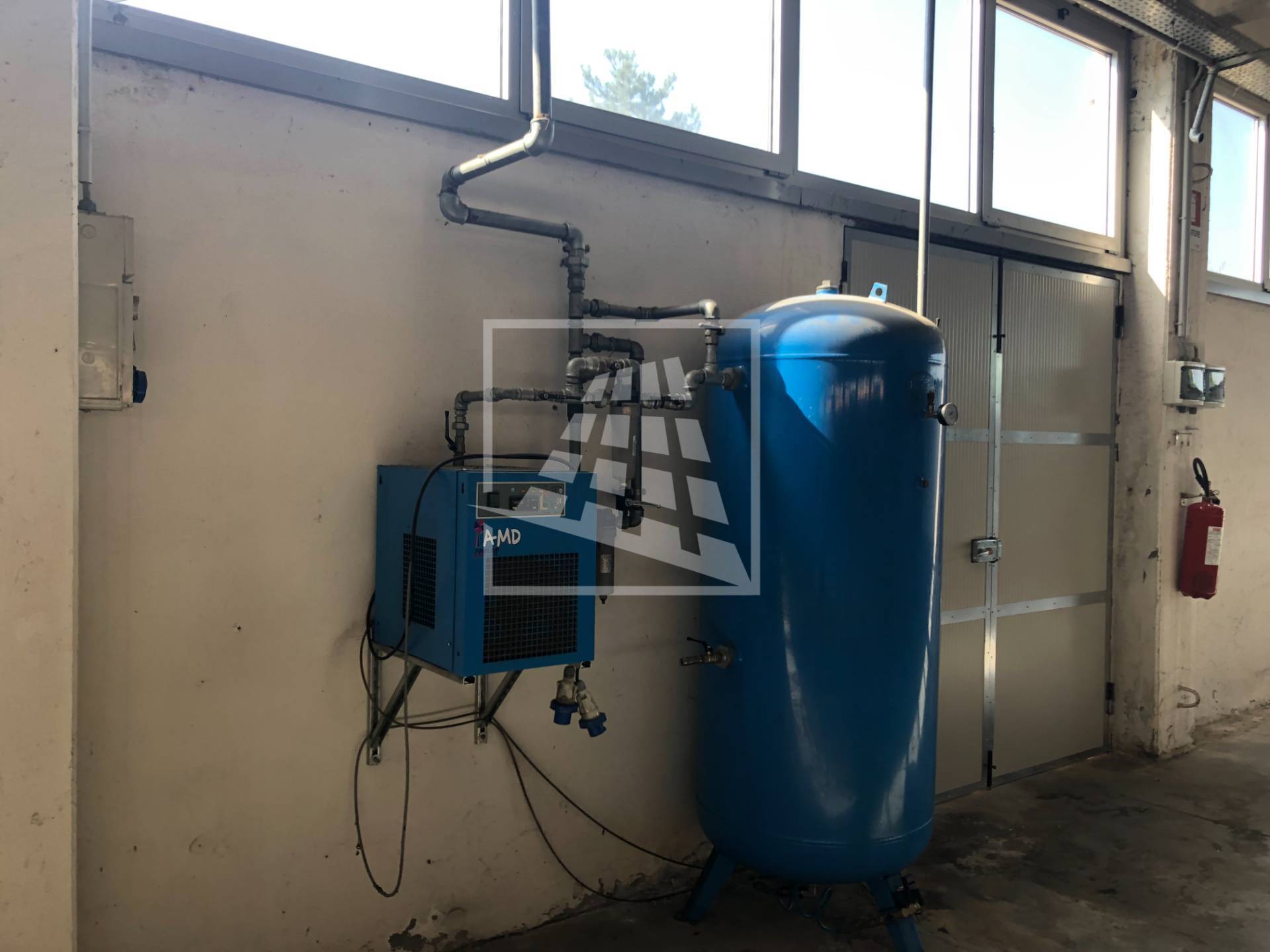 Presente impianto di illuminazione, impianto di estrazione d’aria con quattro ventole, impianto aria compressa con accumulo, rete dati, cinque calate 220/380, riscaldamento autonomo e impianto di allarme.