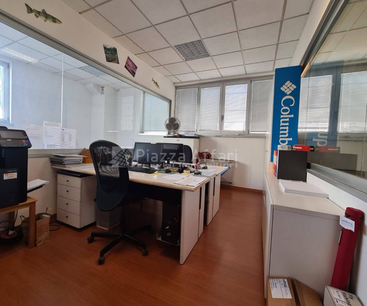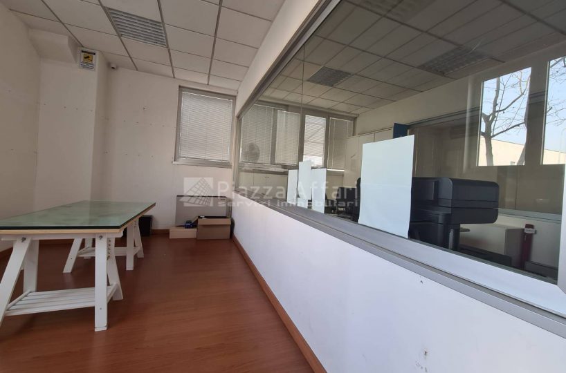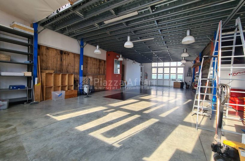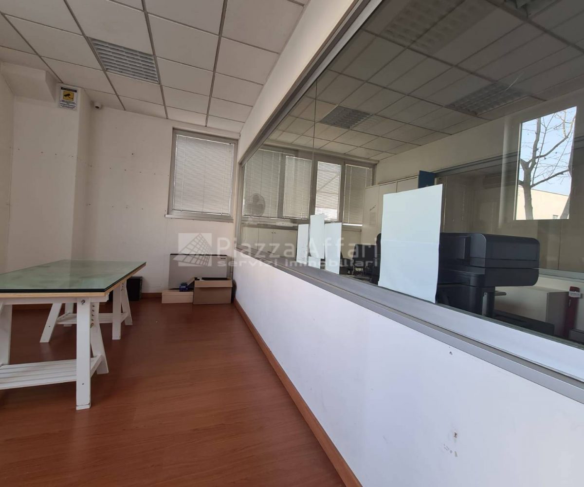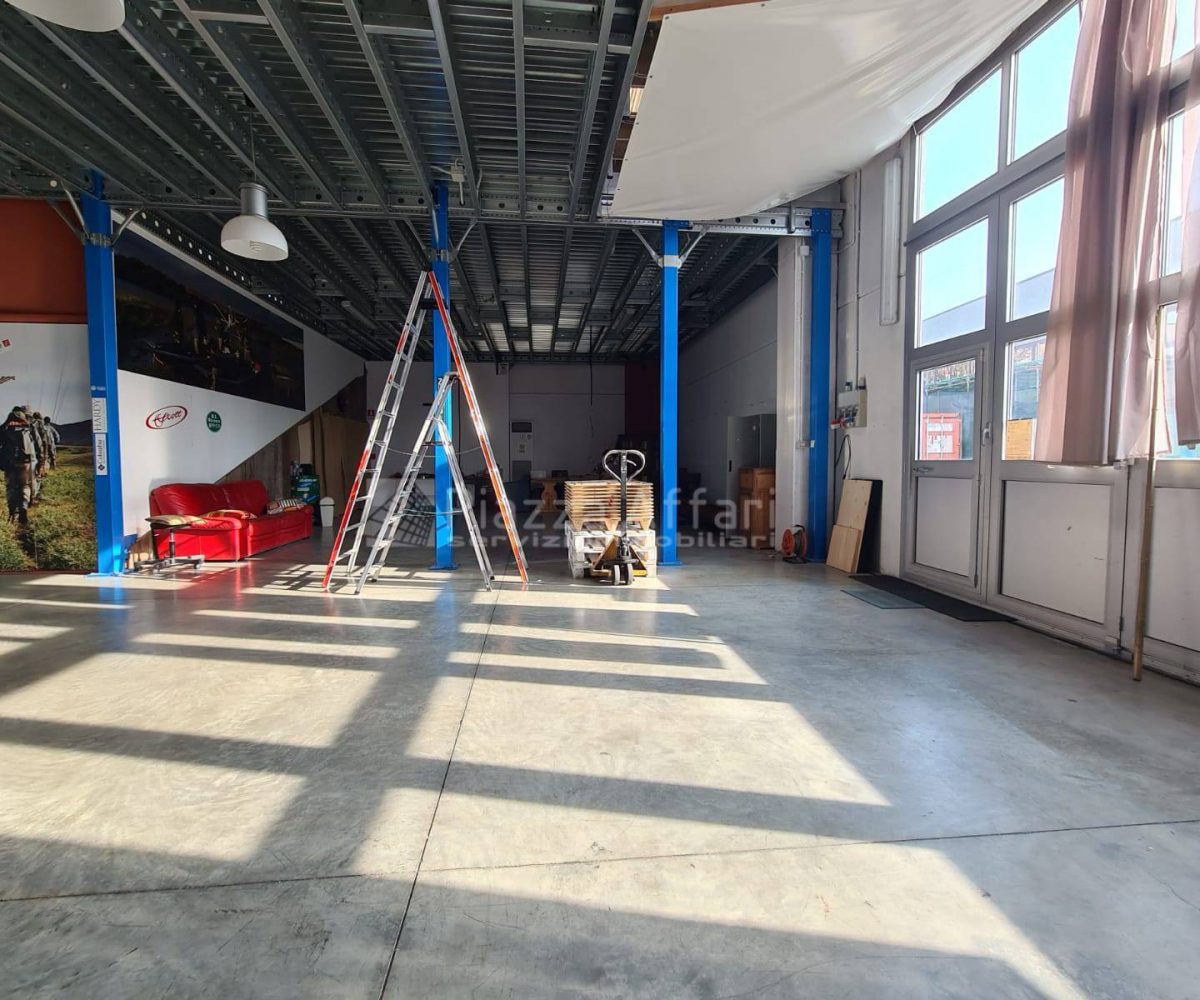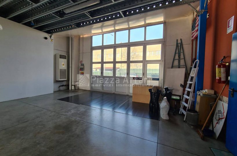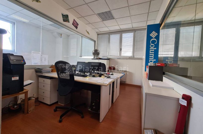 L’immobile è composto al piano terra da zona laboratorio di mq 237 per altezza m 3,60, con due portoni, uffici e un servizio di mq 81 con ingresso indipendente.