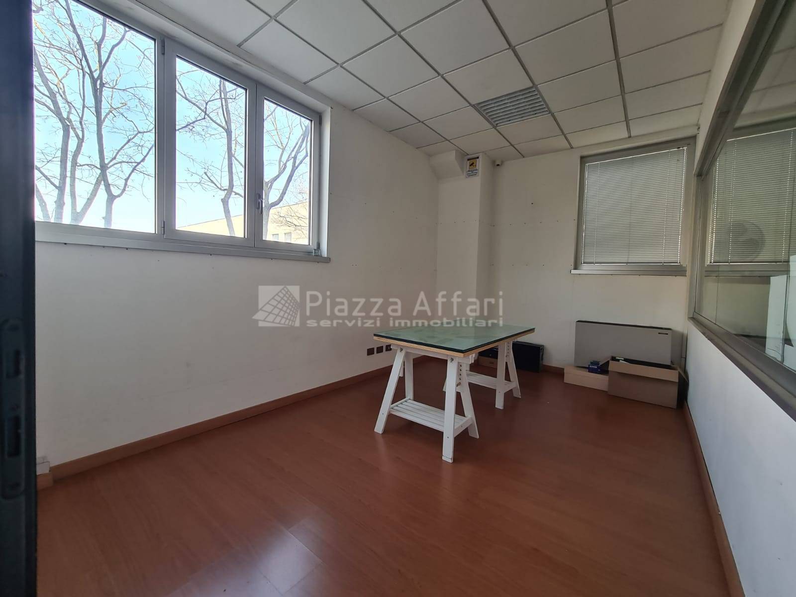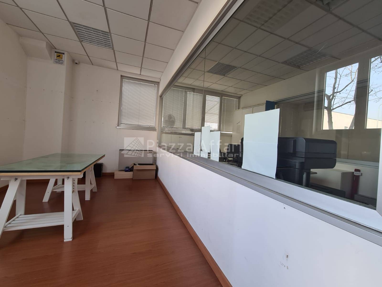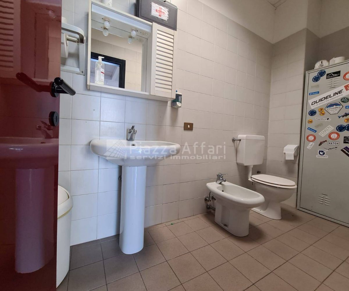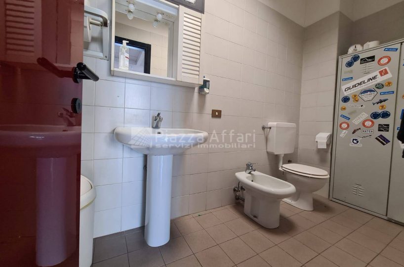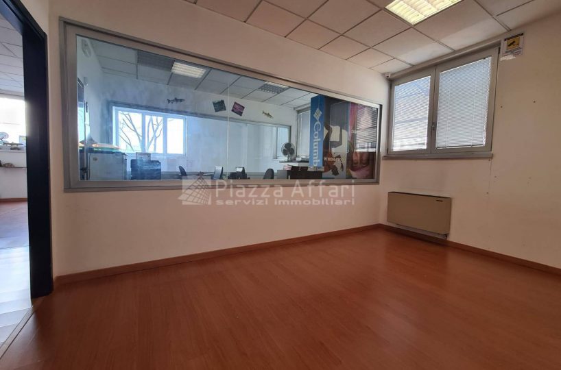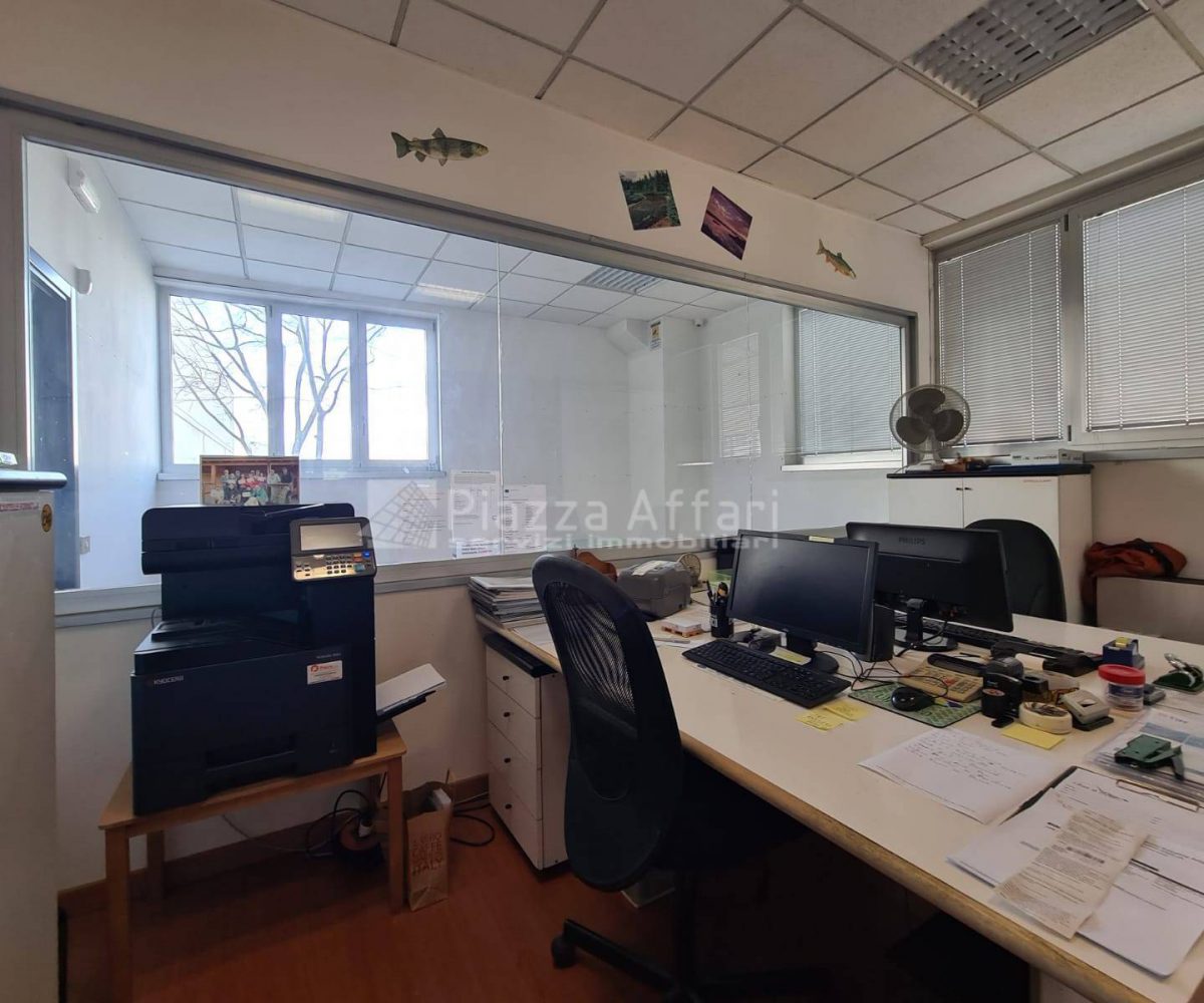 L’immobile è composto al piano terra da zona laboratorio di mq 237 per altezza m 3,60, con due portoni, uffici e un servizio di mq 81 con ingresso indipendente.