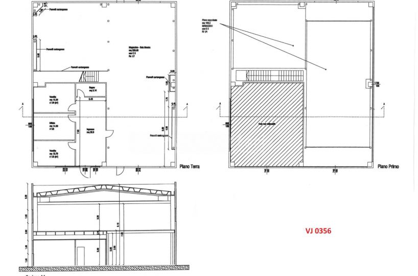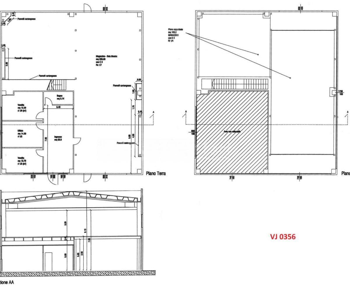 Al piano primo, agibile tramite una comoda scala, un soppalco in laterizio di mq 81 e un soppalco metallico di mq 167 per altezza m 3,00.