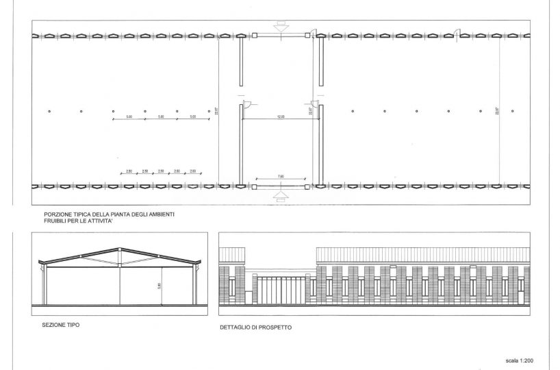 - zona magazzino e vendita mq 5.553 per altezza m 5,80 (campate da m 11,40 e interasse pilastri m 5)