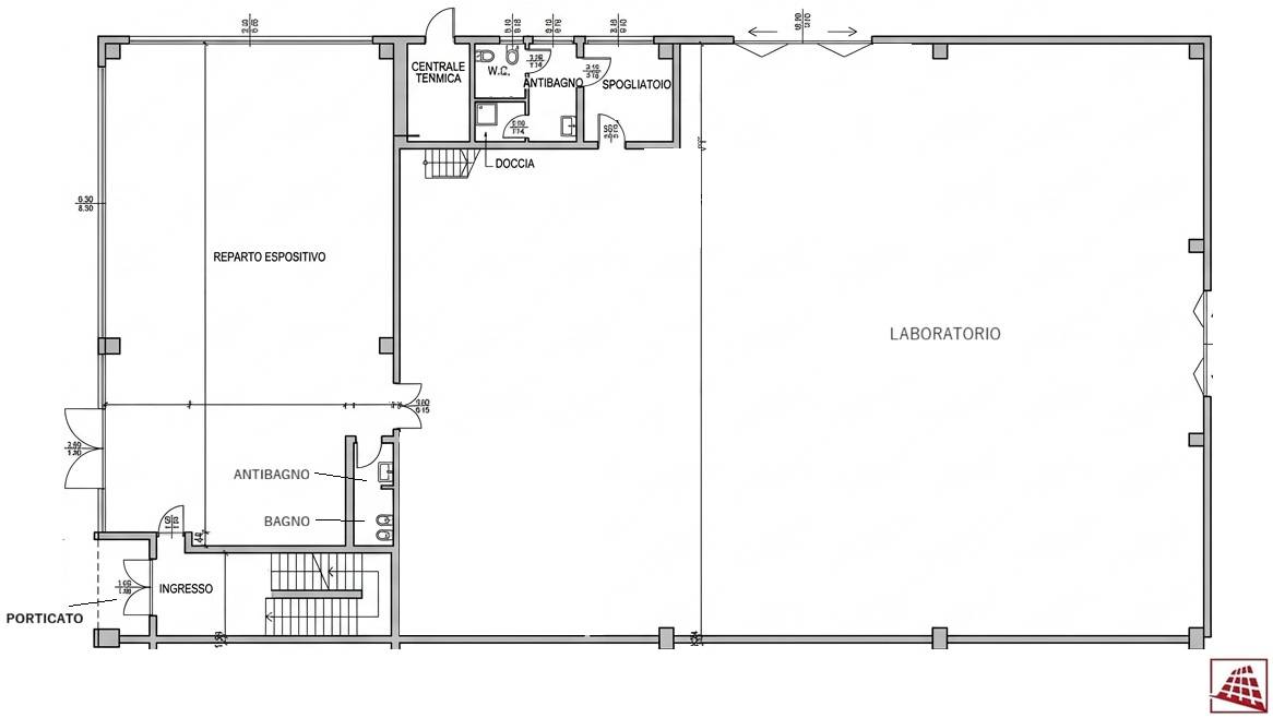 L’immobile si distingue per un’ampia area magazzino di 550 mq caratterizzata da un’altezza utile di 6 metri e dotata di due portoni carrabili che agevolano ogni operazione logistica.