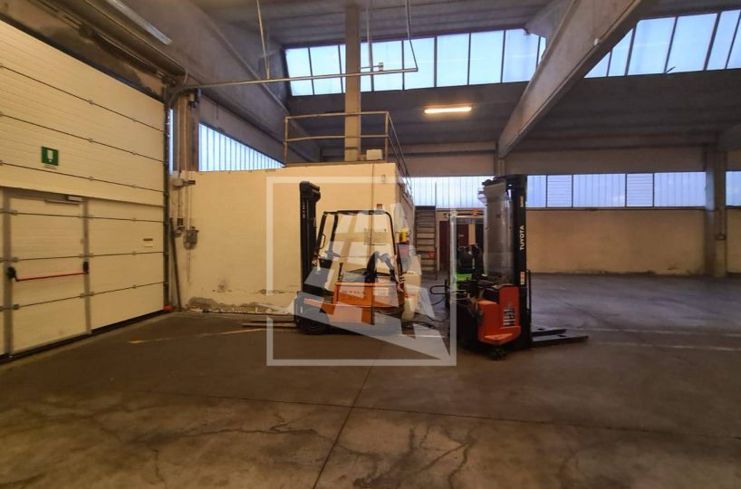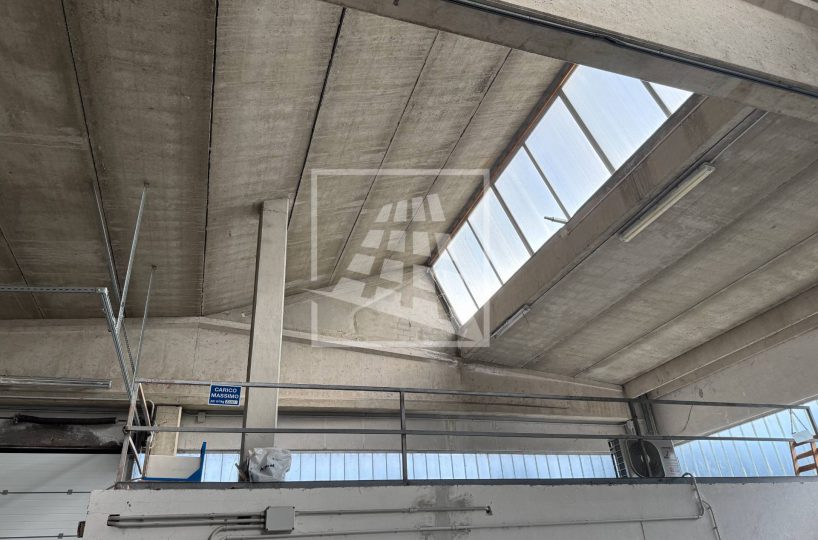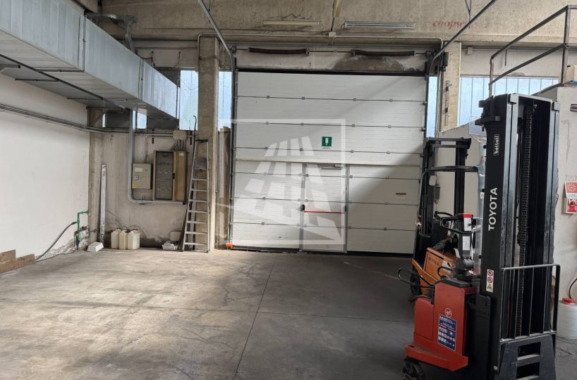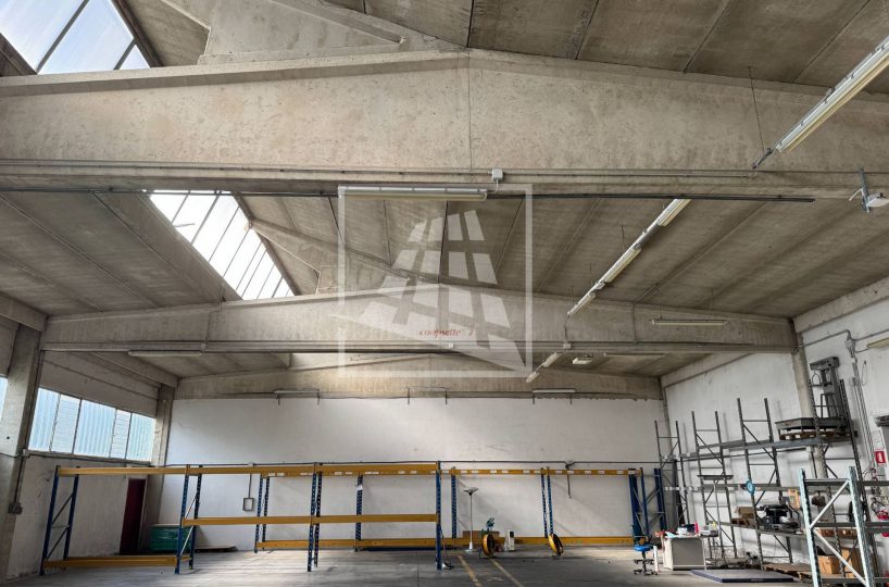 Area magazzino mq 567 per altezza m 5 con un portone carraio, corpi illuminanti , prese 220 e 380