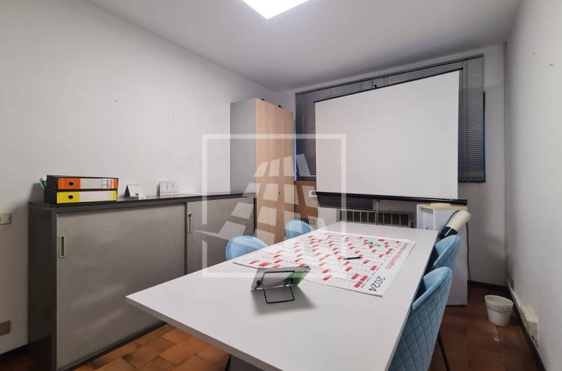 Area uffici mq 48 con ingresso indipendente, due vani uffici, ripostiglio e servizio con antibagno. Questo spazio è climatizzato con pompa di calore e split.