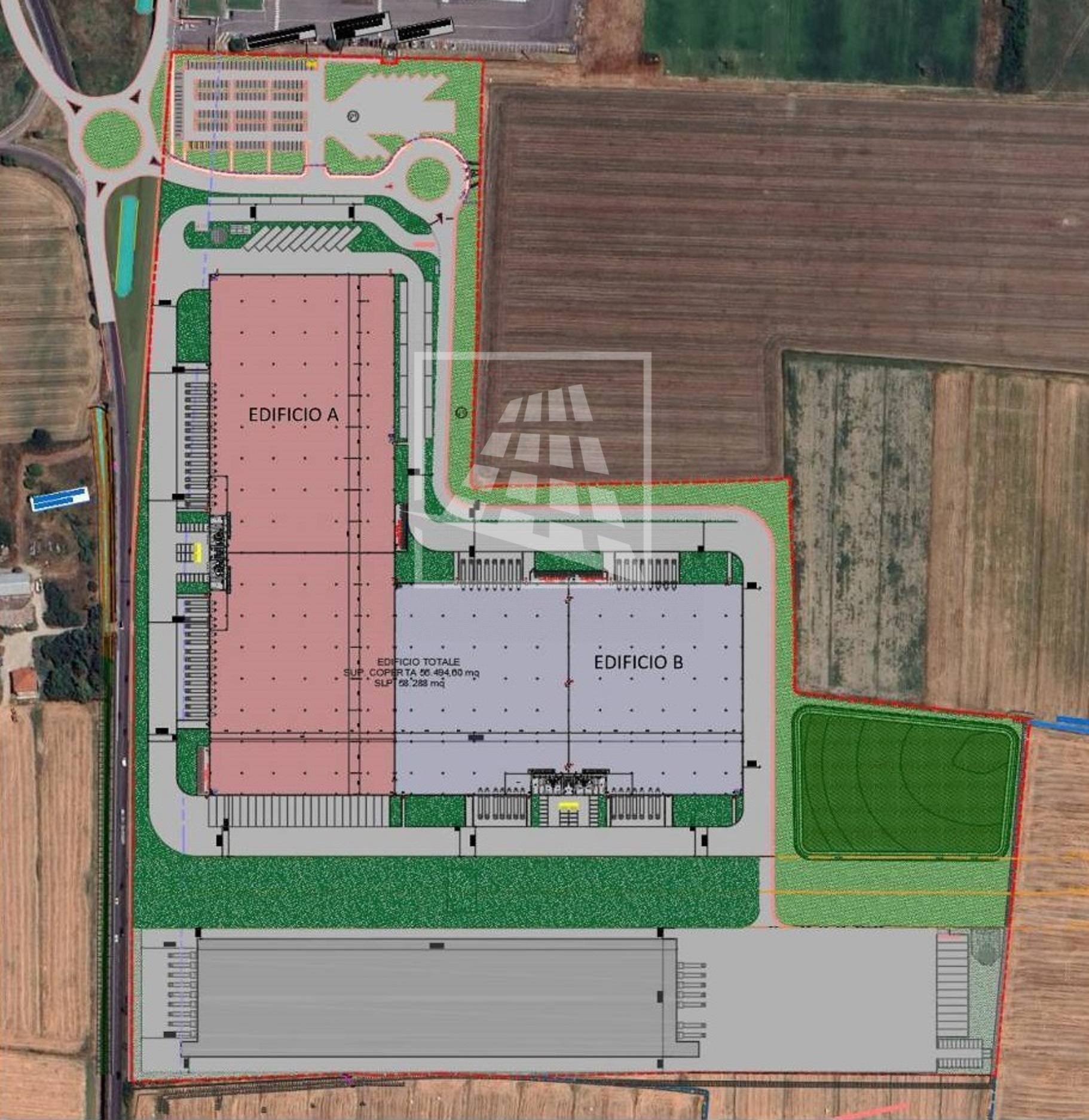 Parma – Capannone Logistico (Rif. VJ1047) su di una superficie fondiaria di mq 99.824, situato a 5 minuti dal casello di Parma in ottimo stato di conservazione certificato REI 120.
