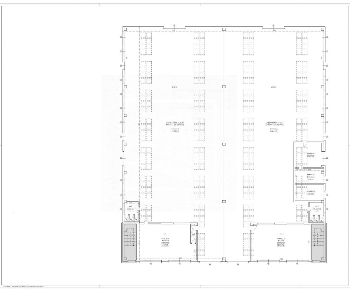 – area amministrativa di mq 206 con due ingressi indipendenti, doppi servizi con doccia e due sala mostra open space munite di due vetrine ciascuna.