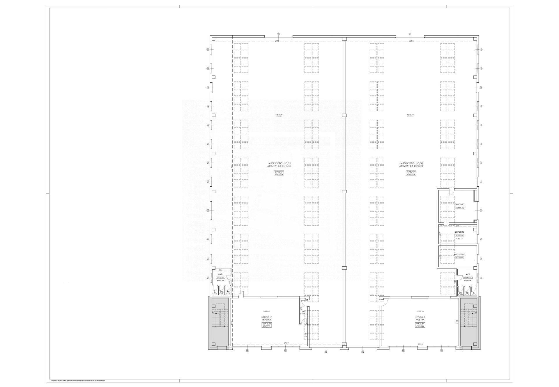 – area produttiva di mq 854 e mq 918 per altezza m 6,50, con cinque portoni carrai, impianto elettrico con prese 220 e 380
